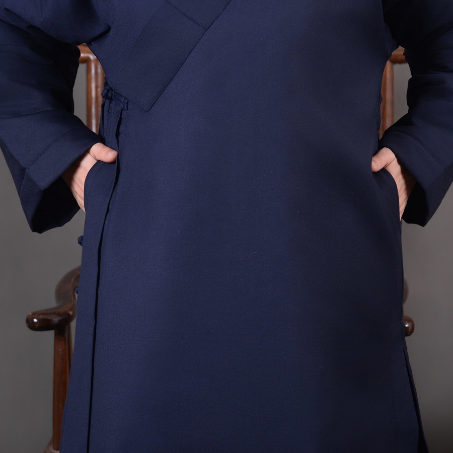 春秋用道服、ビチ長袍、道教服、男女兼用斜襟僧服、紺色練習服、長袍