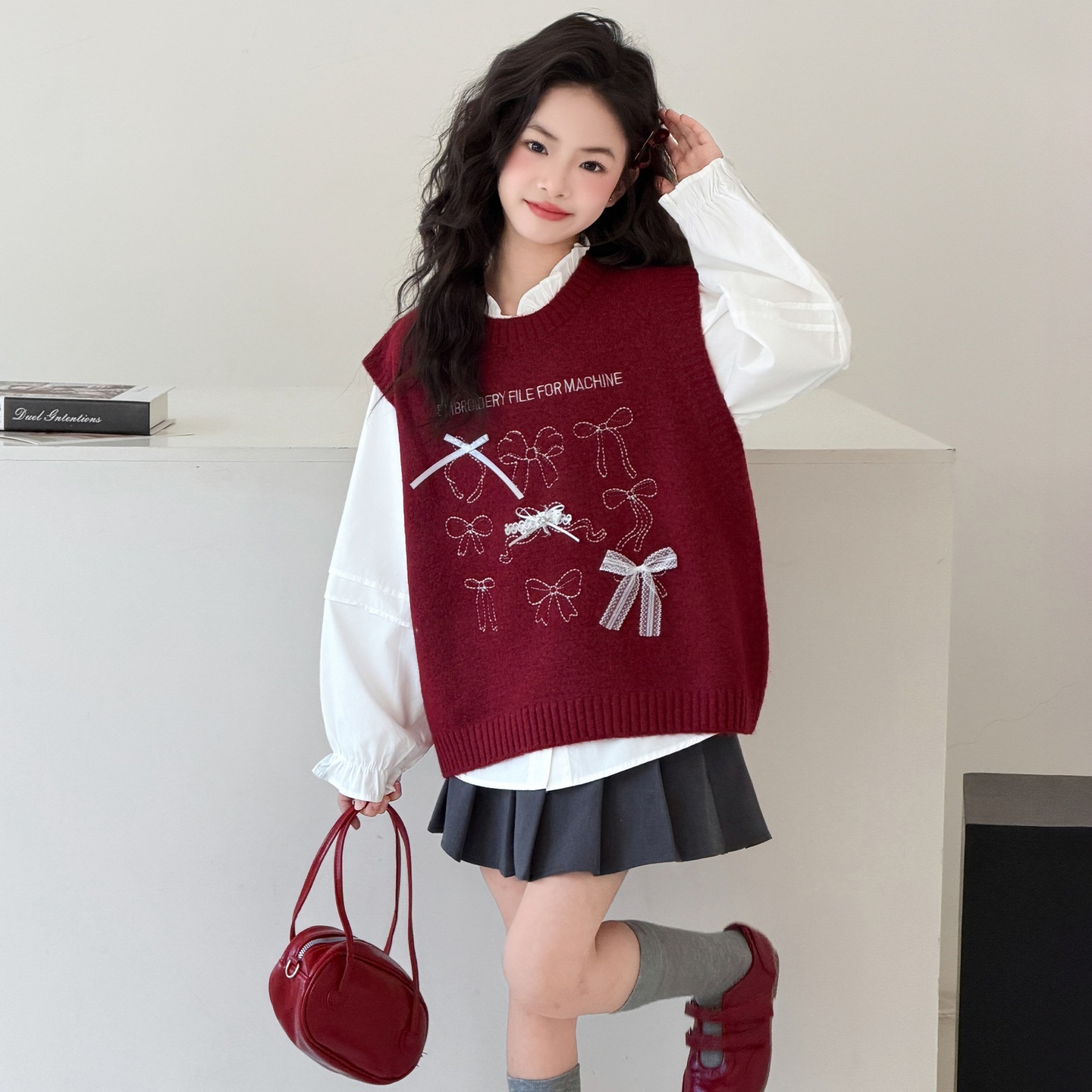 女童马甲衬衫三件套装2026春装新款大童女孩jk百褶裙春季衬衣套装
