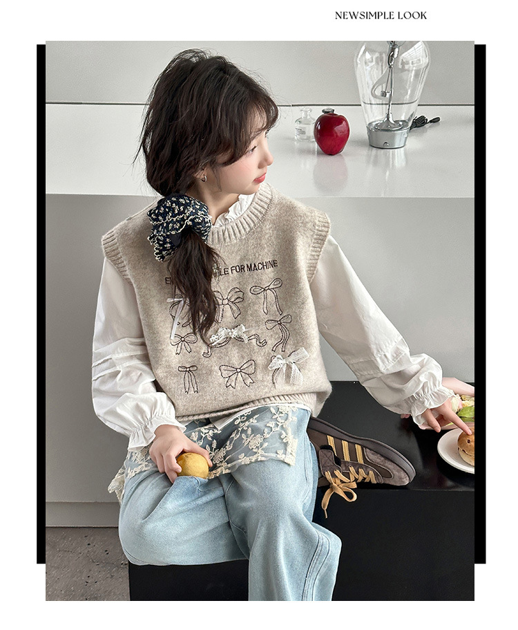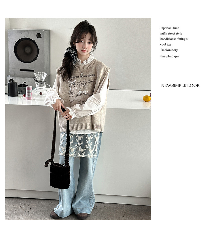 颜色 米色马甲加衬衣,灰色马甲加衬衣,牛仔裤