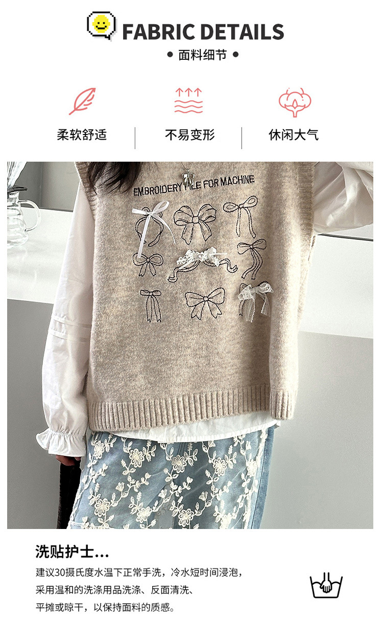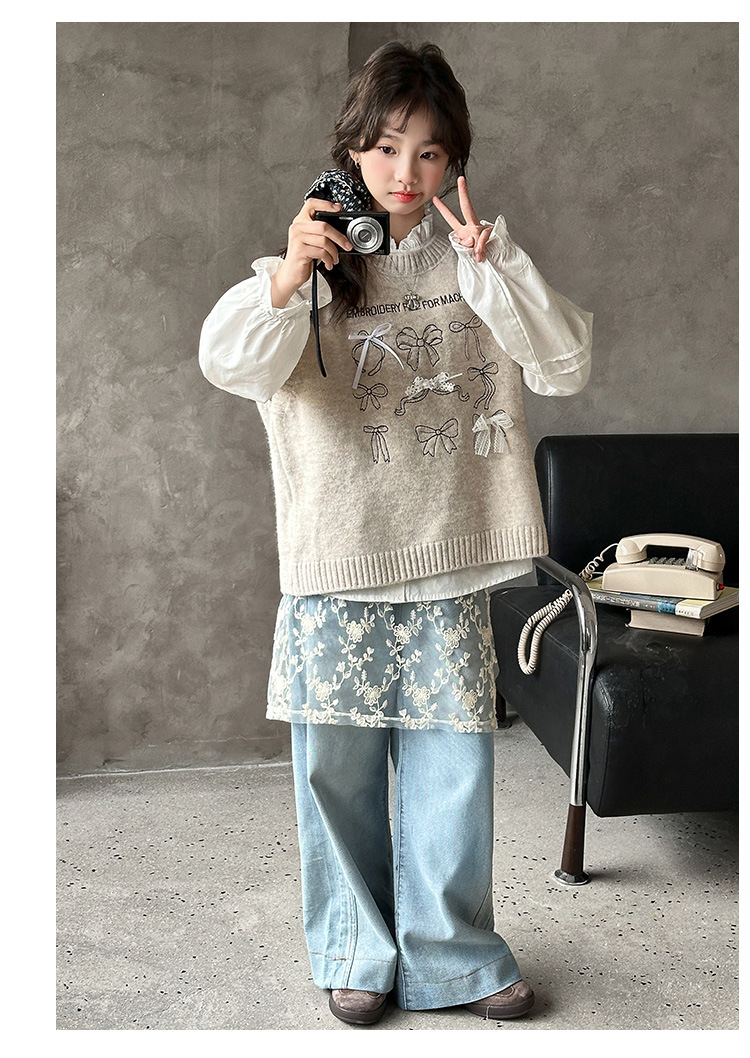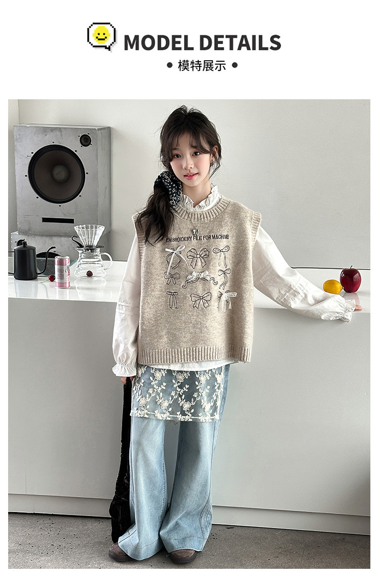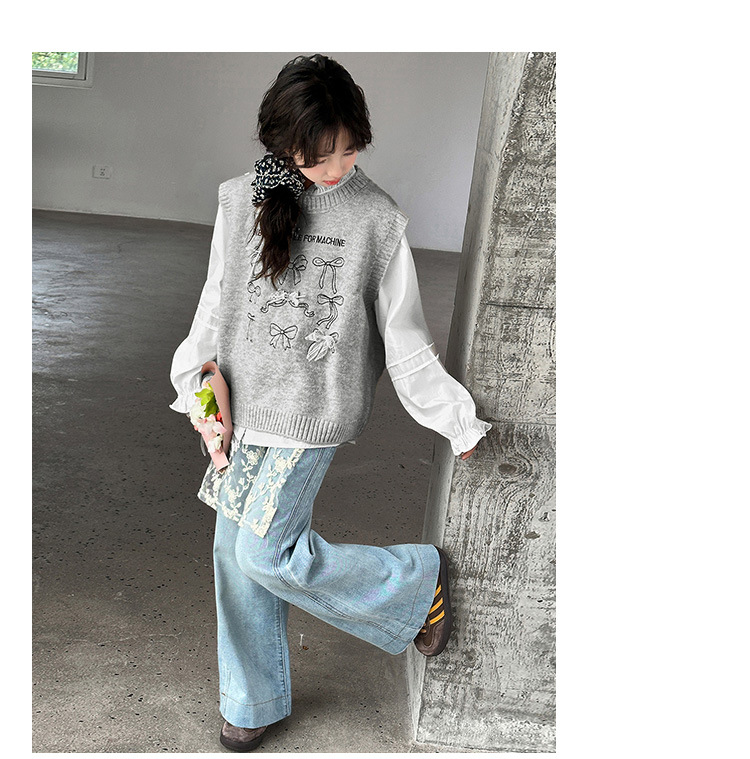 女童春季蝴蝶结毛线马甲套装2026新款中大童春装针织背心牛仔裤潮