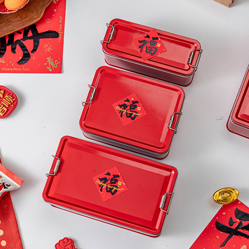 新年长方形铁罐密封罐太妃糖高颜值食品包装盒便携储物仪式感糖盒