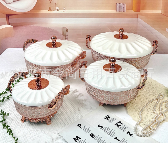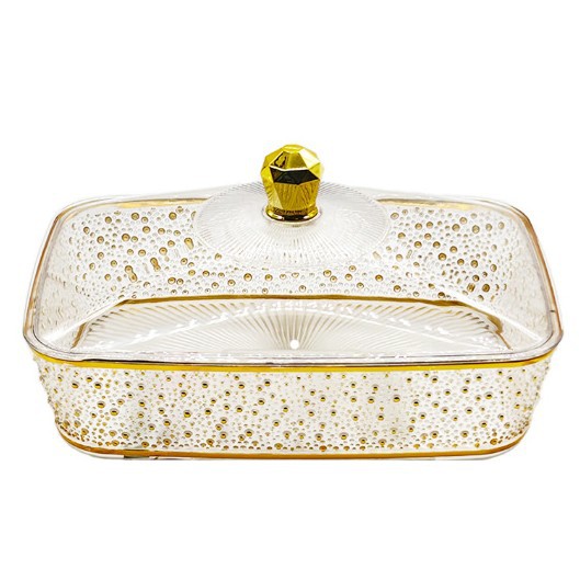 売れ筋新商品フルーツプレート、家庭用リビングルーム用金縁スナックプレート、蓋付きベース付き、クリエイティブなディスプレイプレート、越境卸売