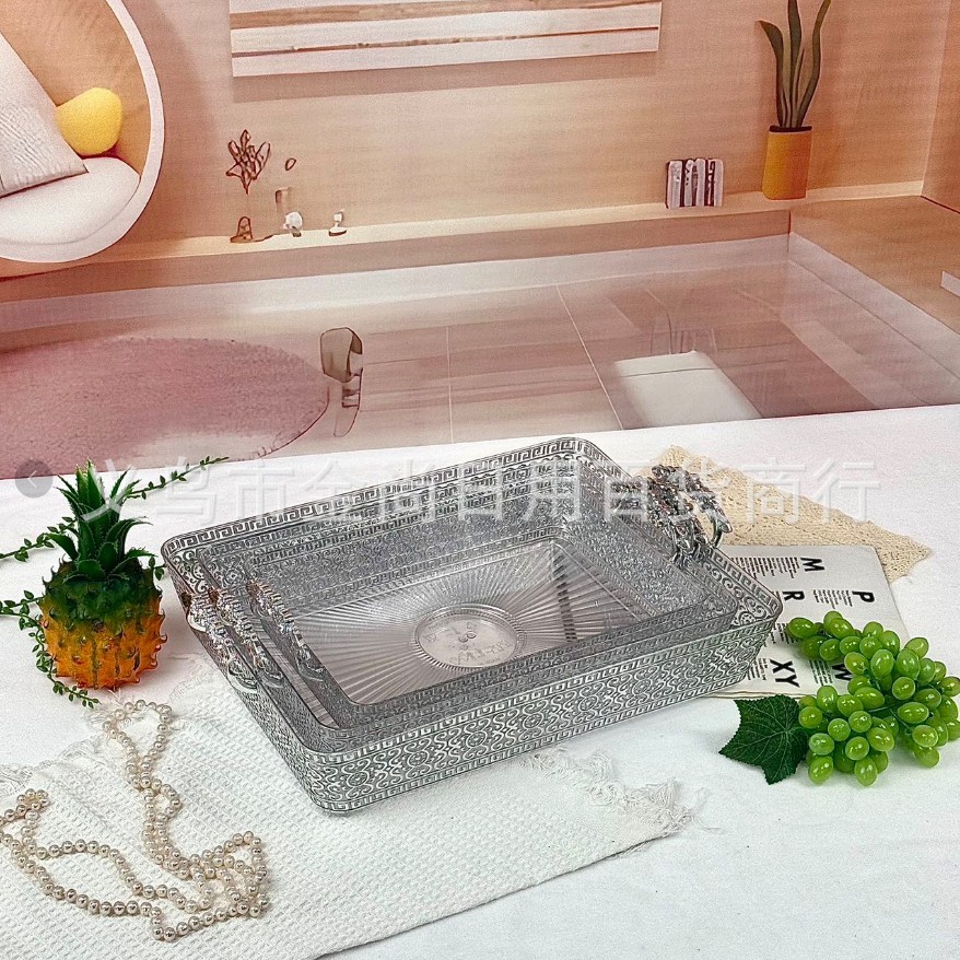 新款卷心花长方盘长方形塑料干果盘带盖带脚客厅水果盘蛋糕盘