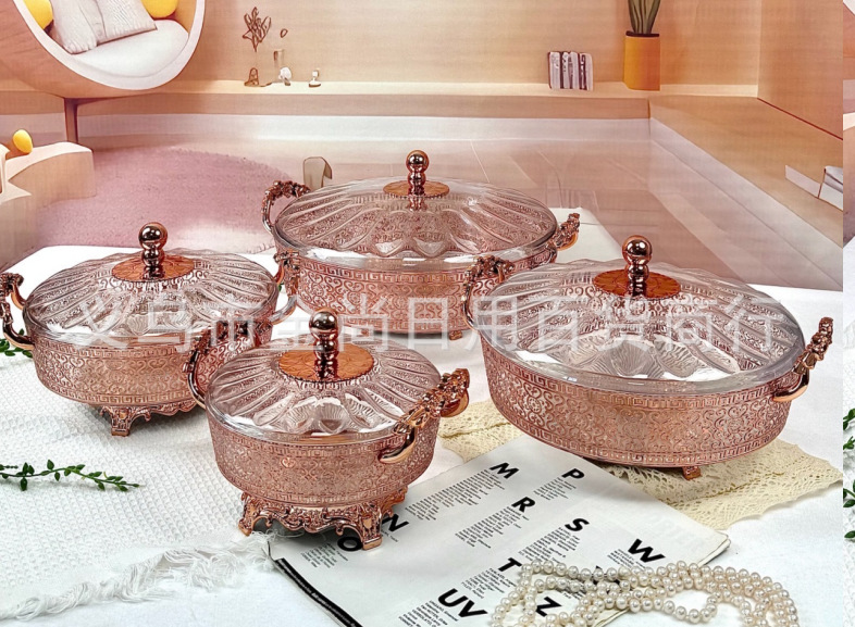 新款高颜值欧式果盘轻奢款果盘带盖带脚果盘干果盘零食糖果盘子