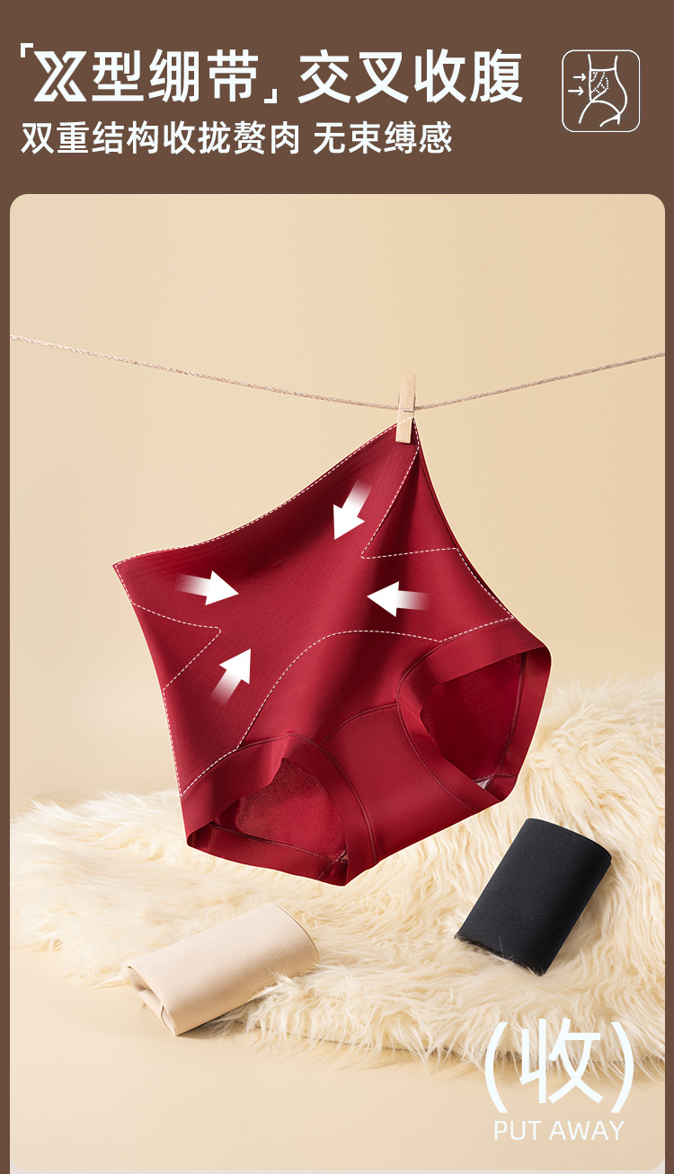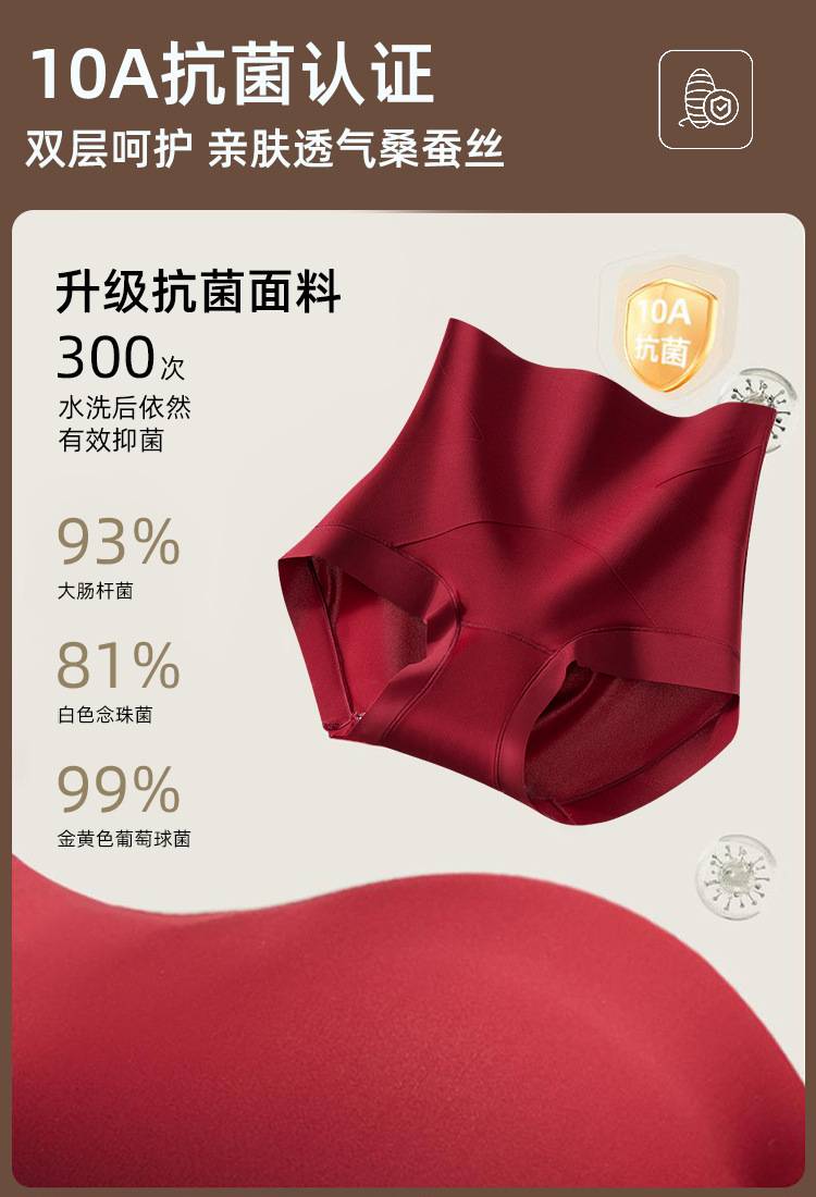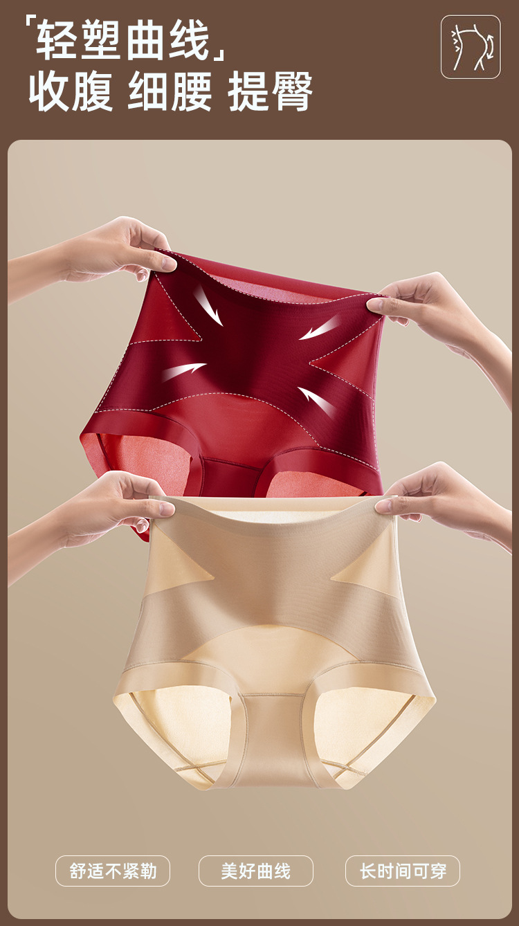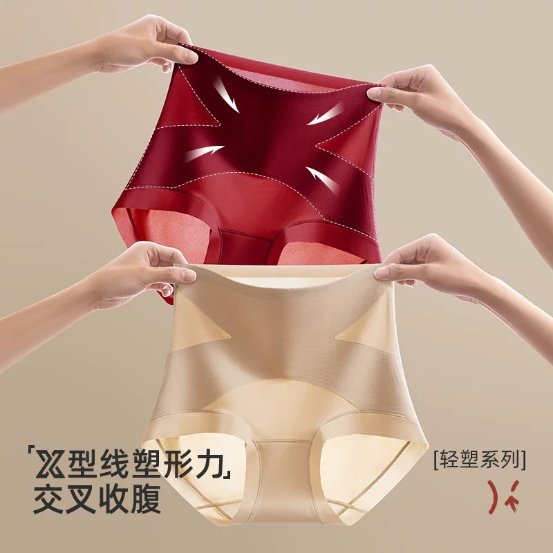 X绷带高腰收腹无痕隐形三角裤女提臀塑形10A抗菌蚕丝加长底裆内裤