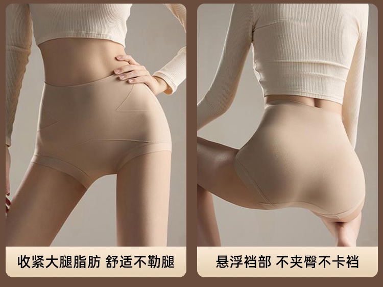 交叉微压轻塑肌底内裤女士隐形无痕高腰加长底裆收腹提臀美体裤