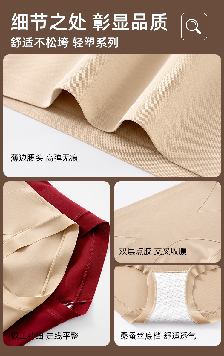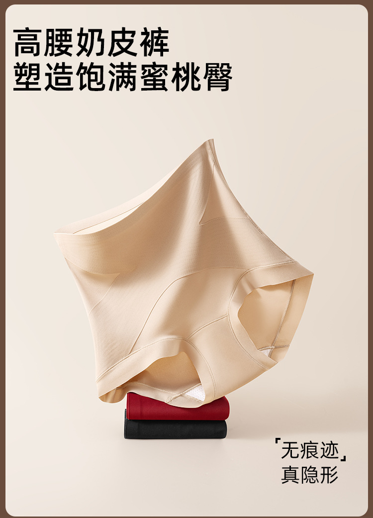 粉底液隐形高腰内裤女10A桑蚕丝抗菌无痕薄款收腹提臀打底塑身裤