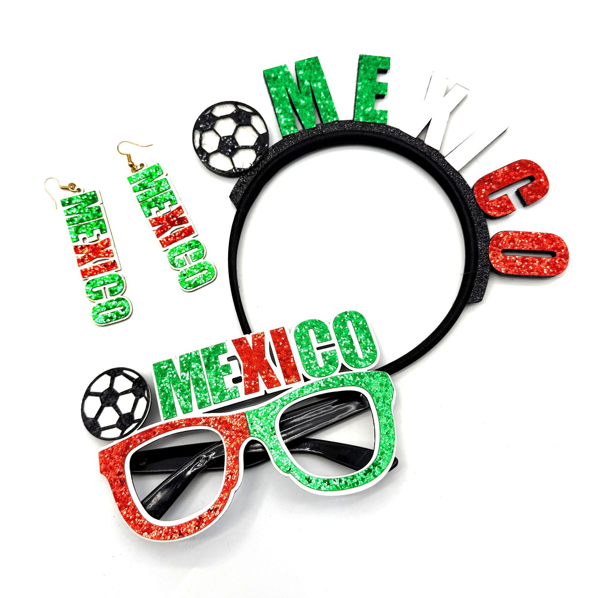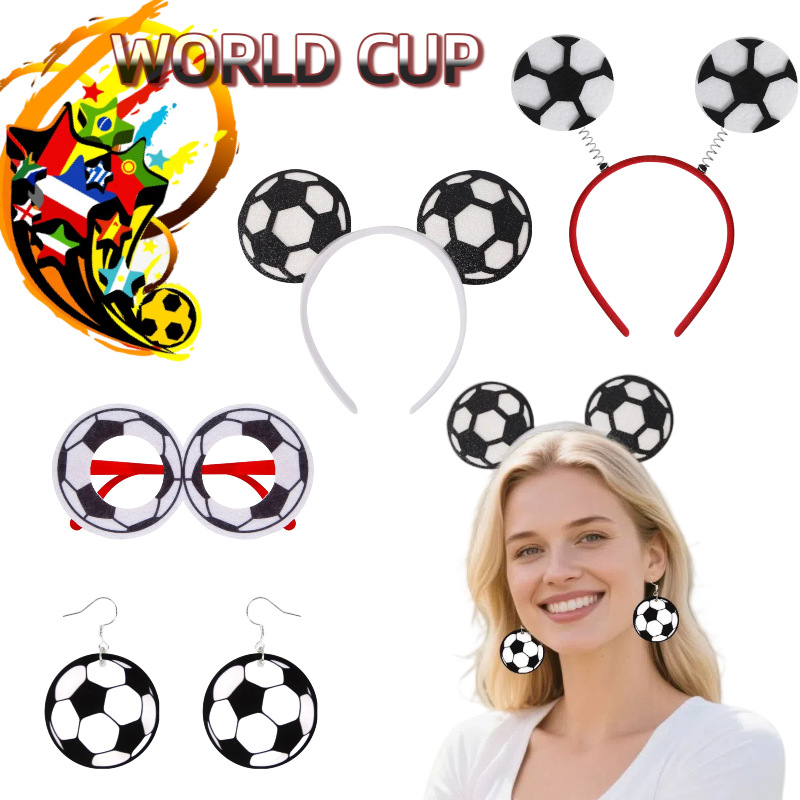 2026世界杯足球赛美国加拿大墨西哥助威发箍 眼镜 耳环套装
