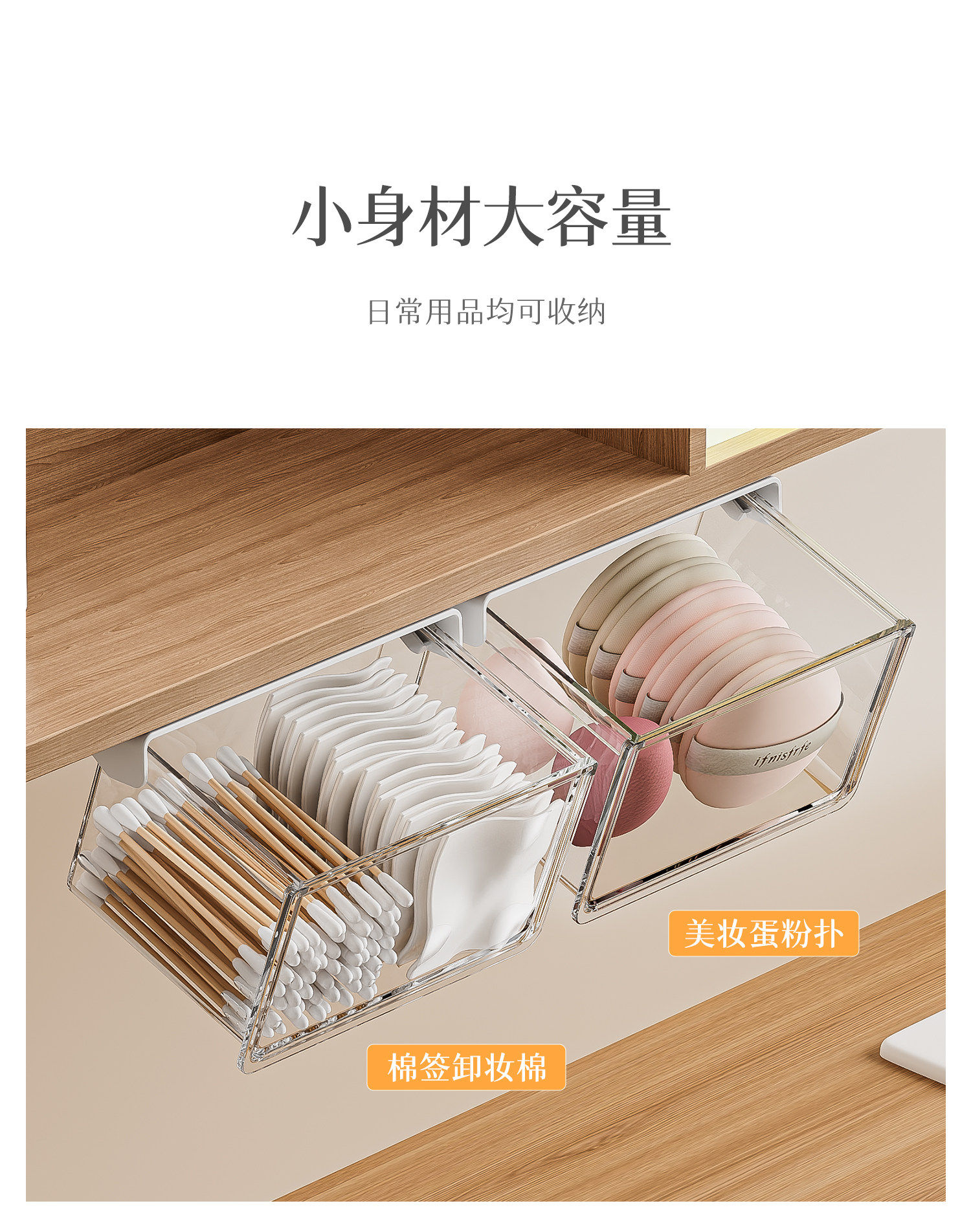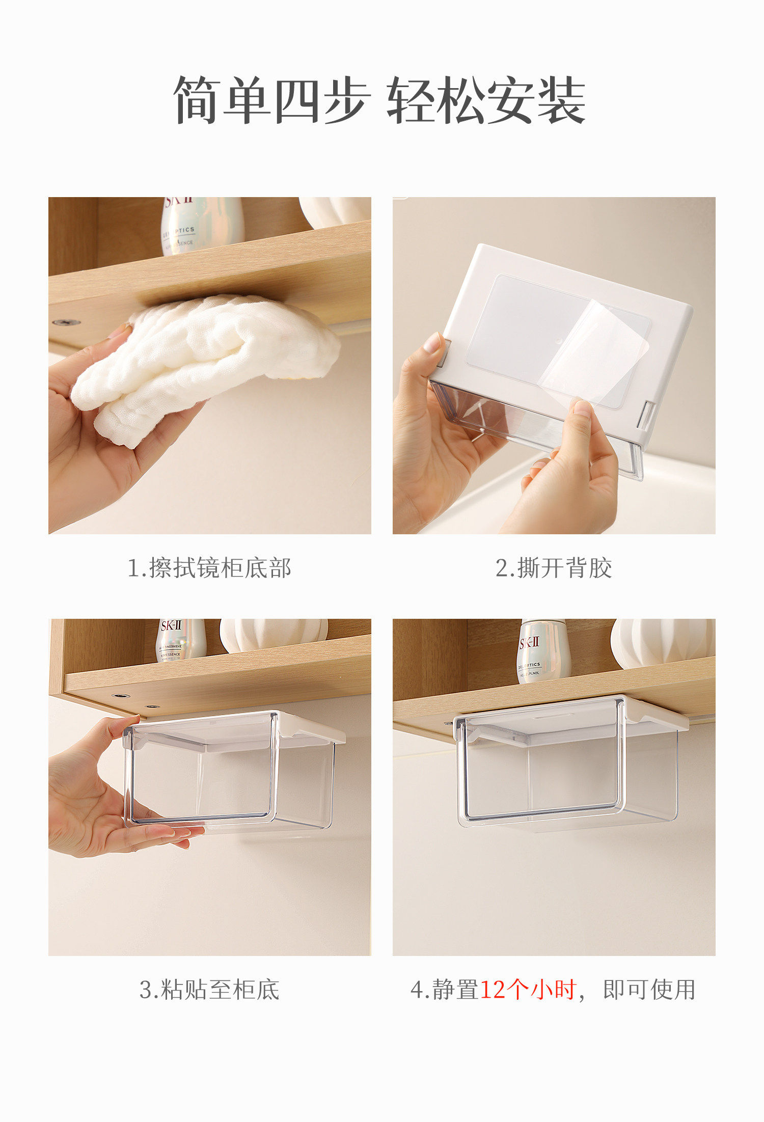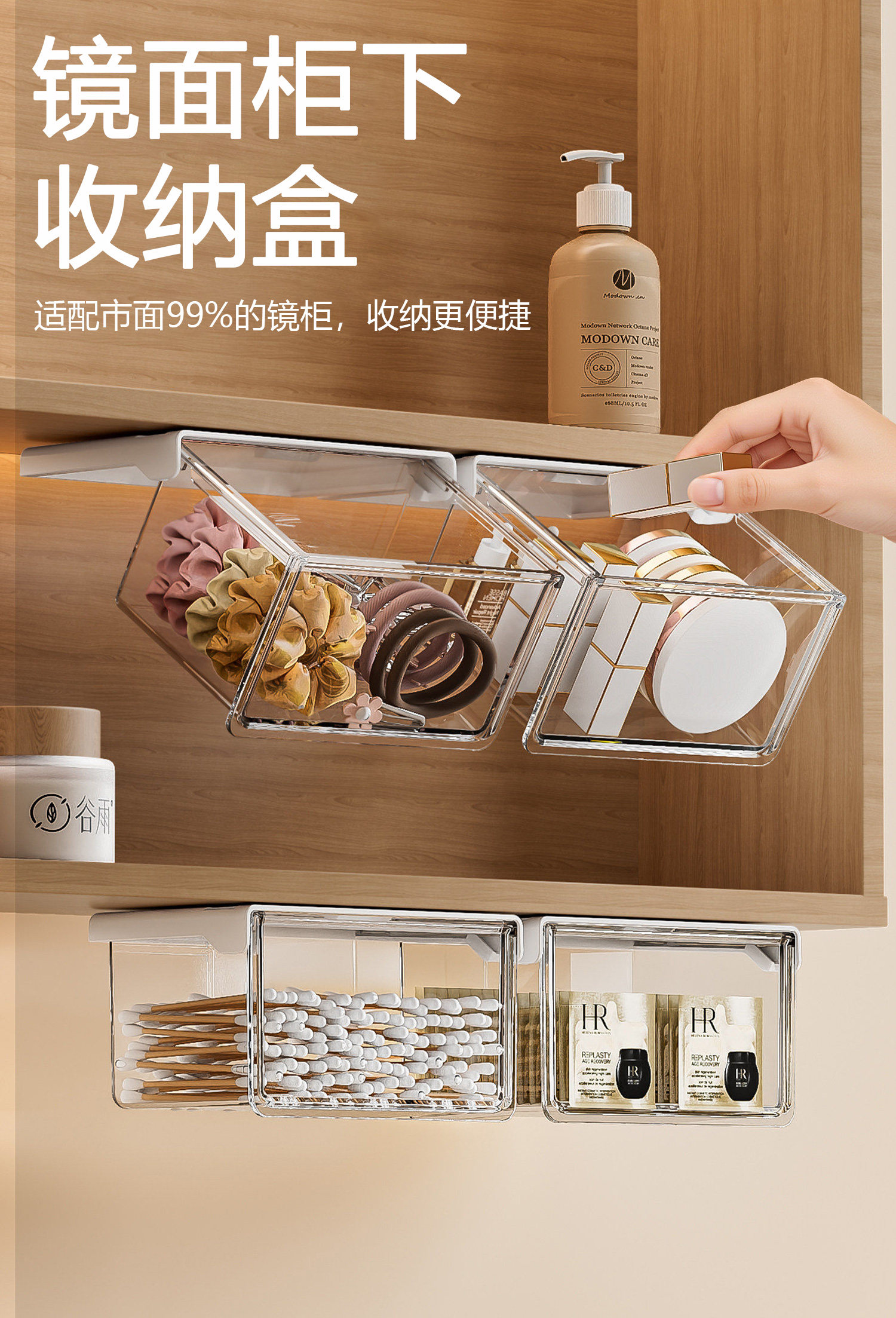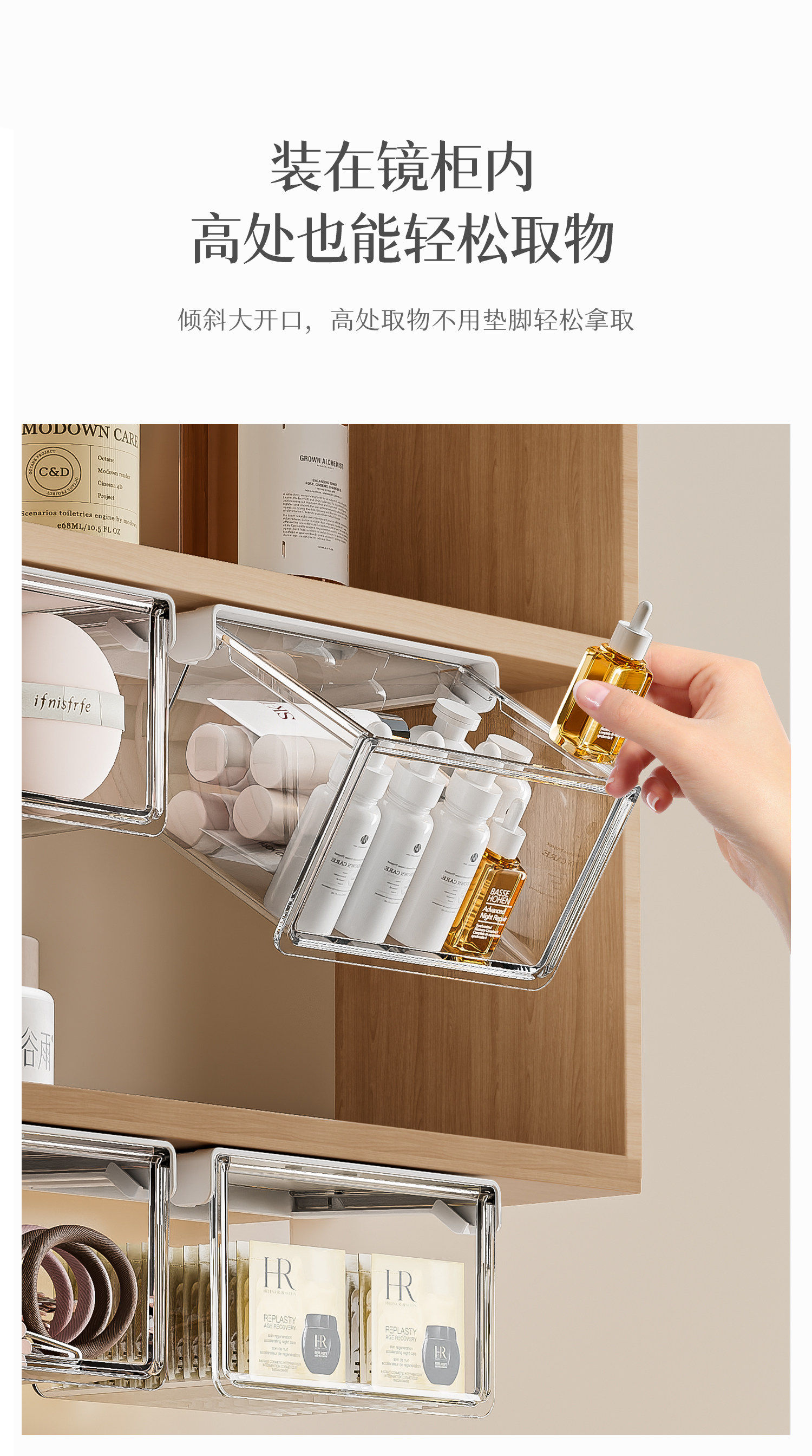 镜柜下免打孔抽屉式收纳盒卫生间化妆品卸妆棉口红棉签透明置物架