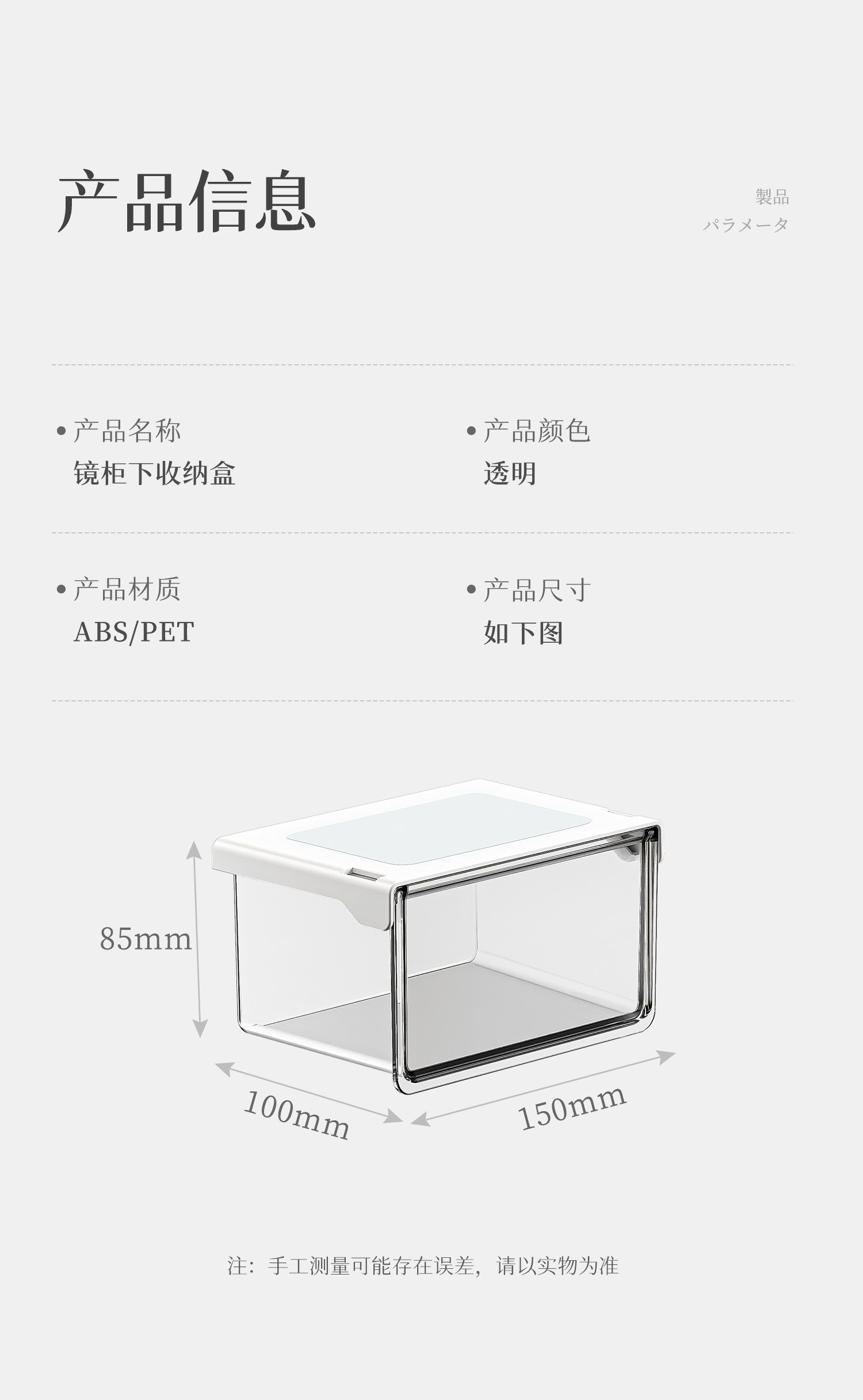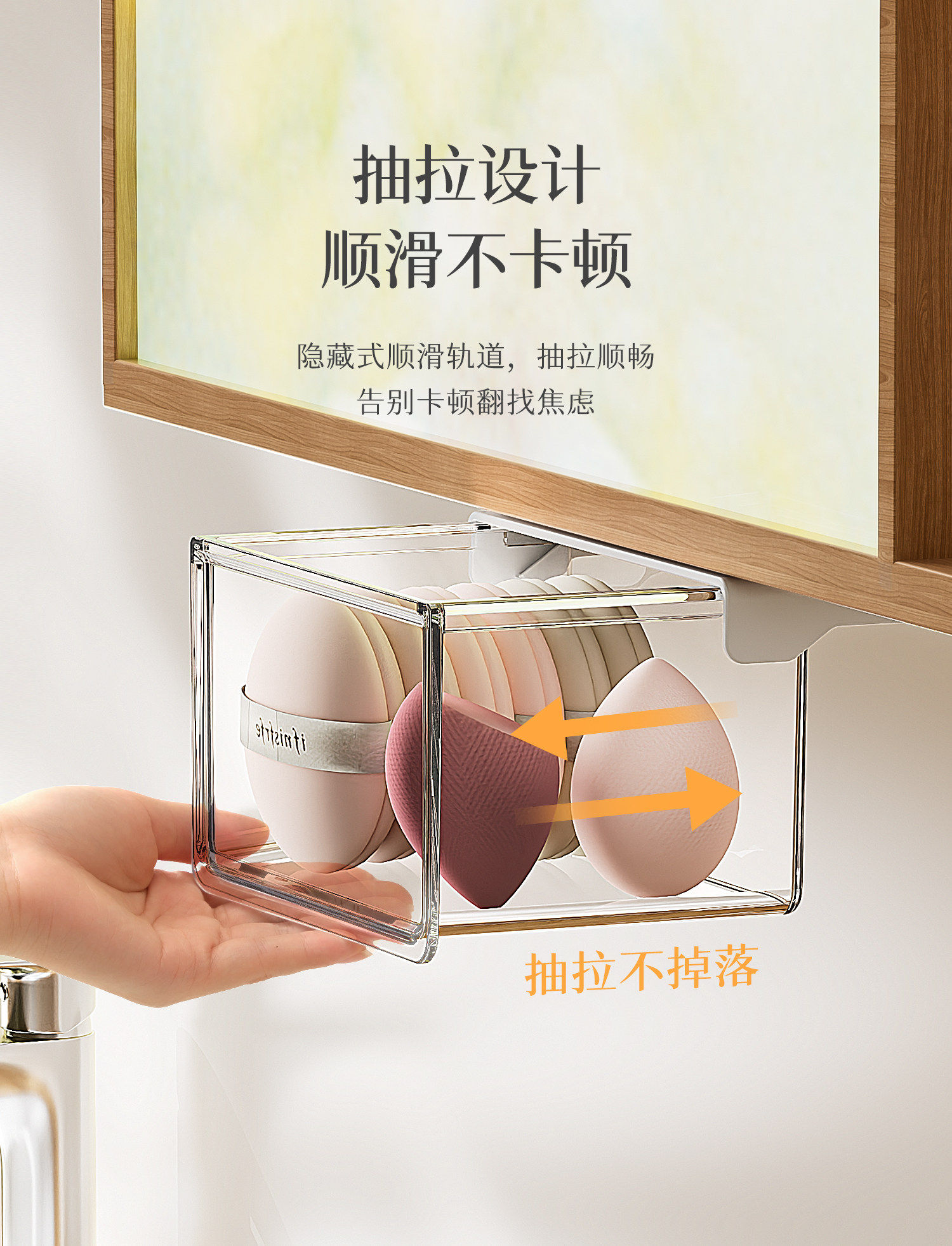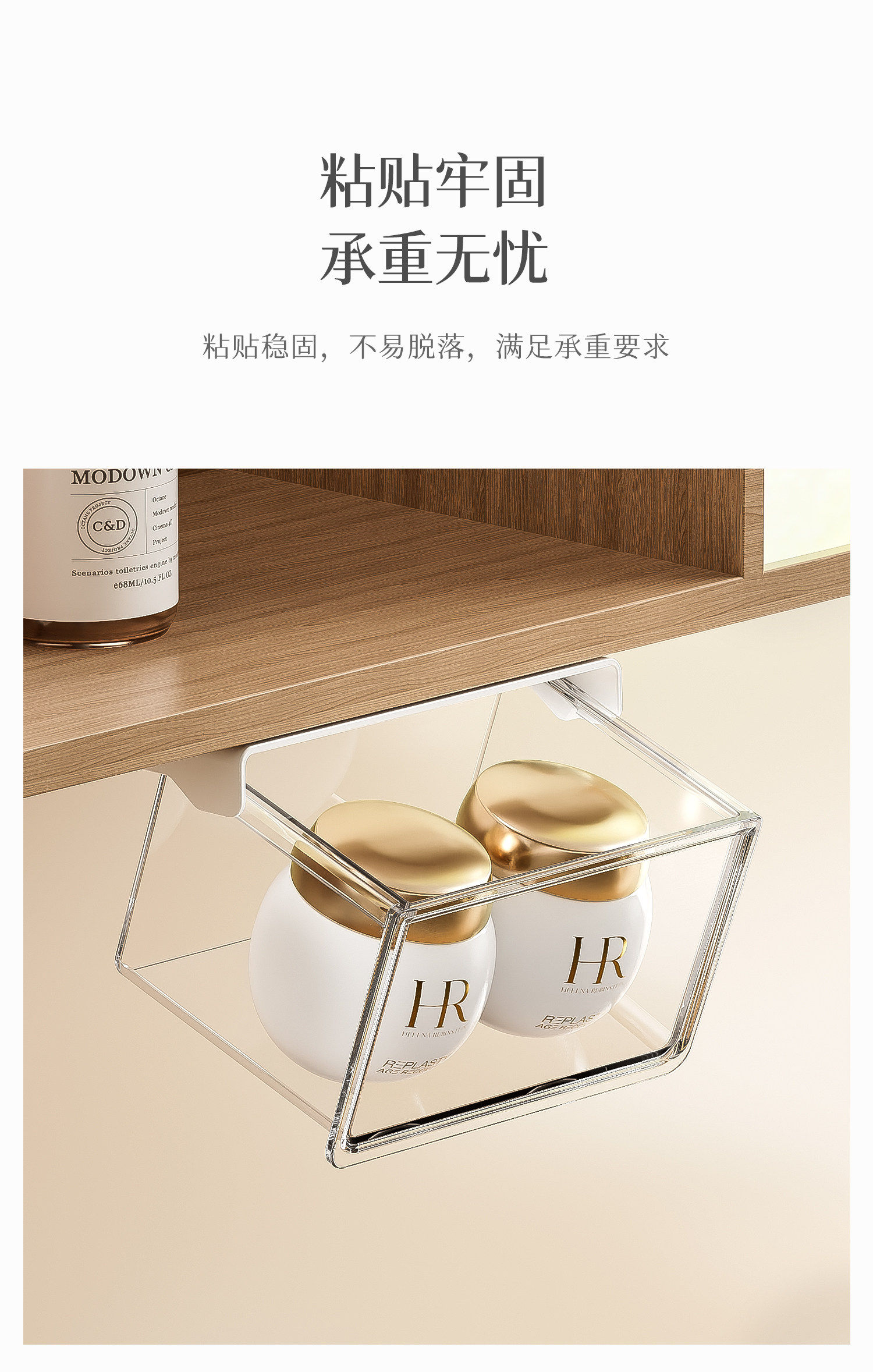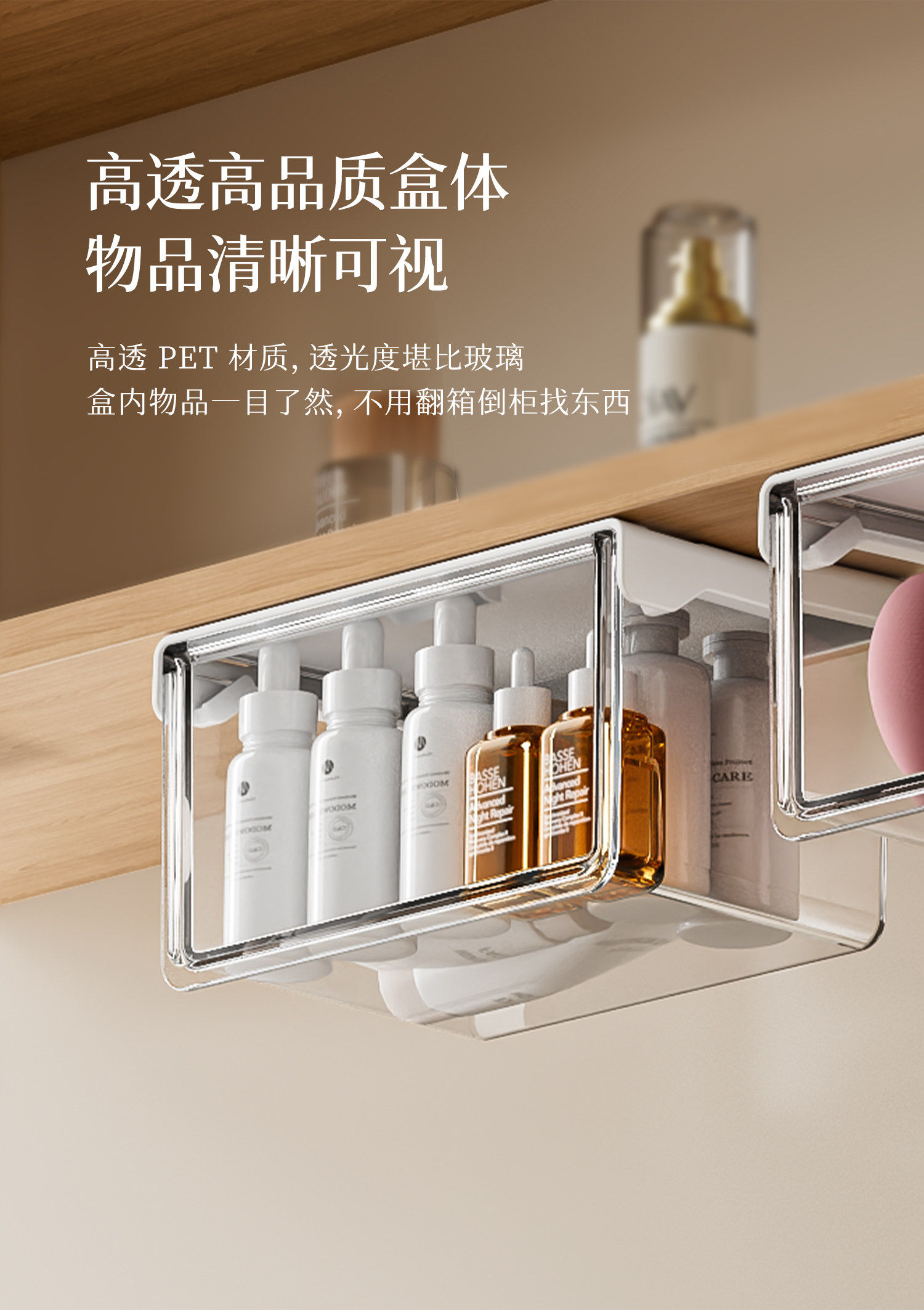 镜柜下免打孔抽屉式收纳盒卫生间化妆品卸妆棉口红棉签透明置物架
