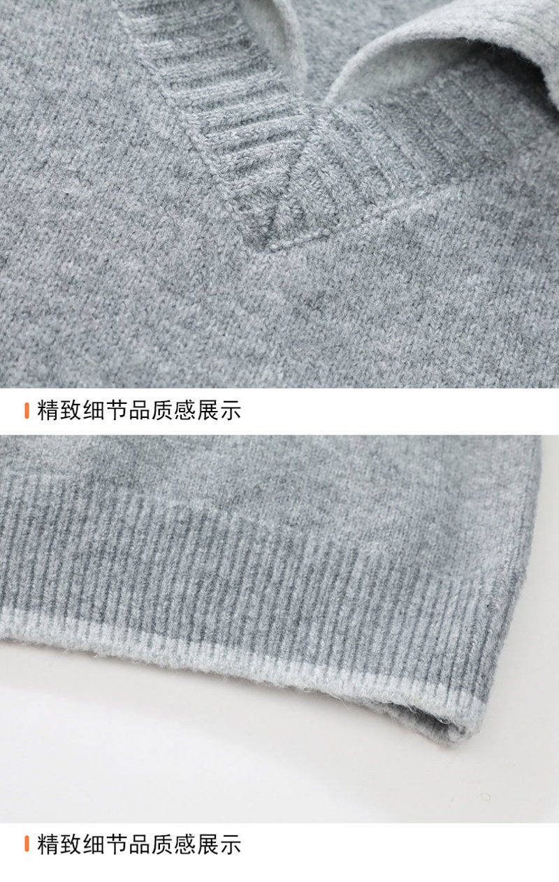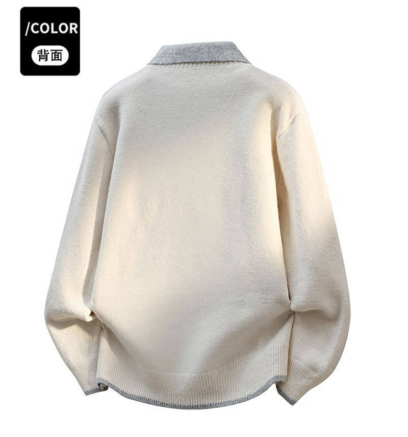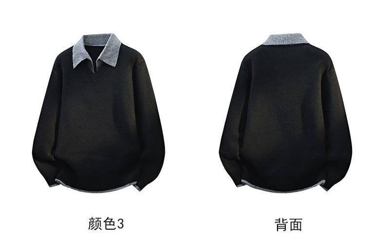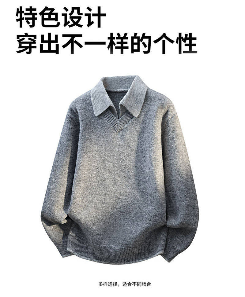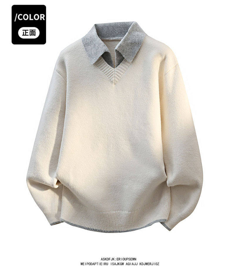 复古假两件毛衣男士秋冬季宽松翻领潮流新品慵懒新品衫毛线衣线衫