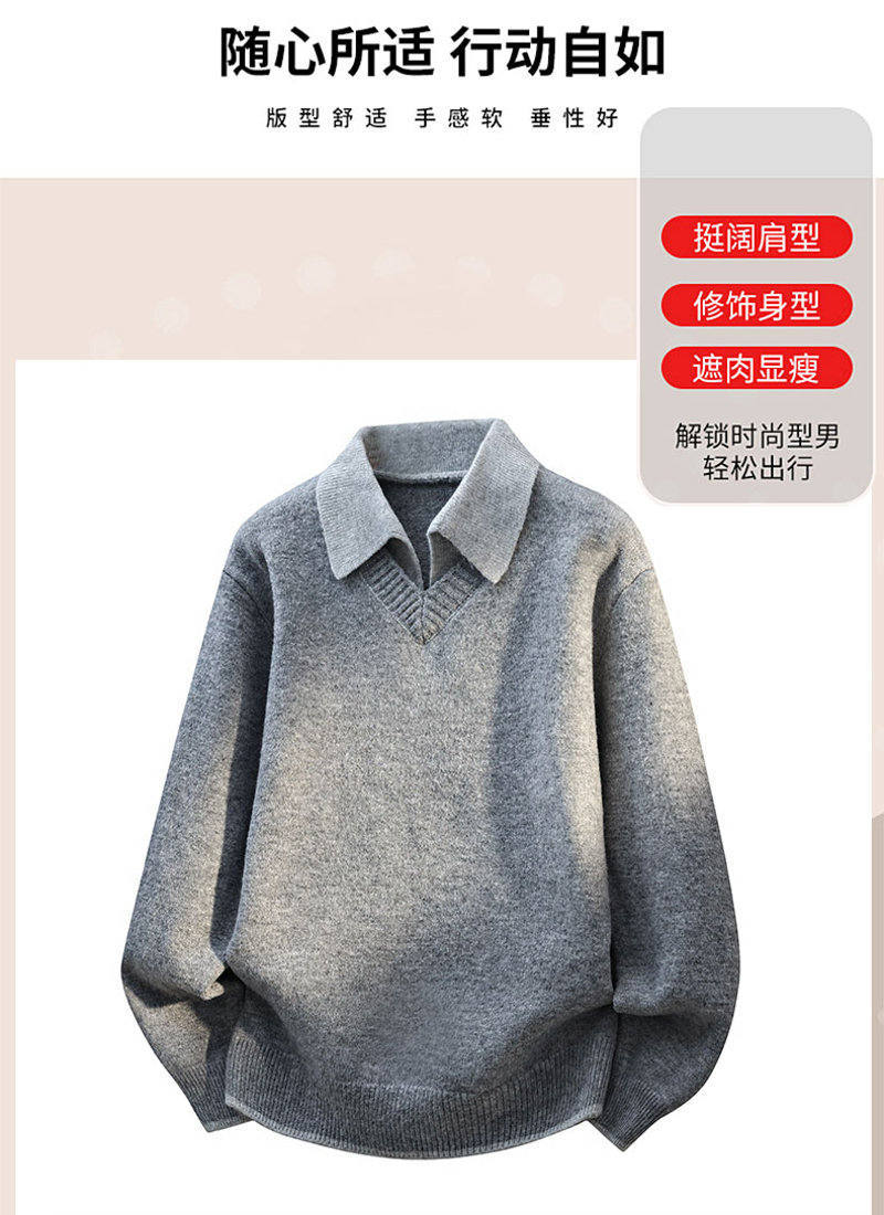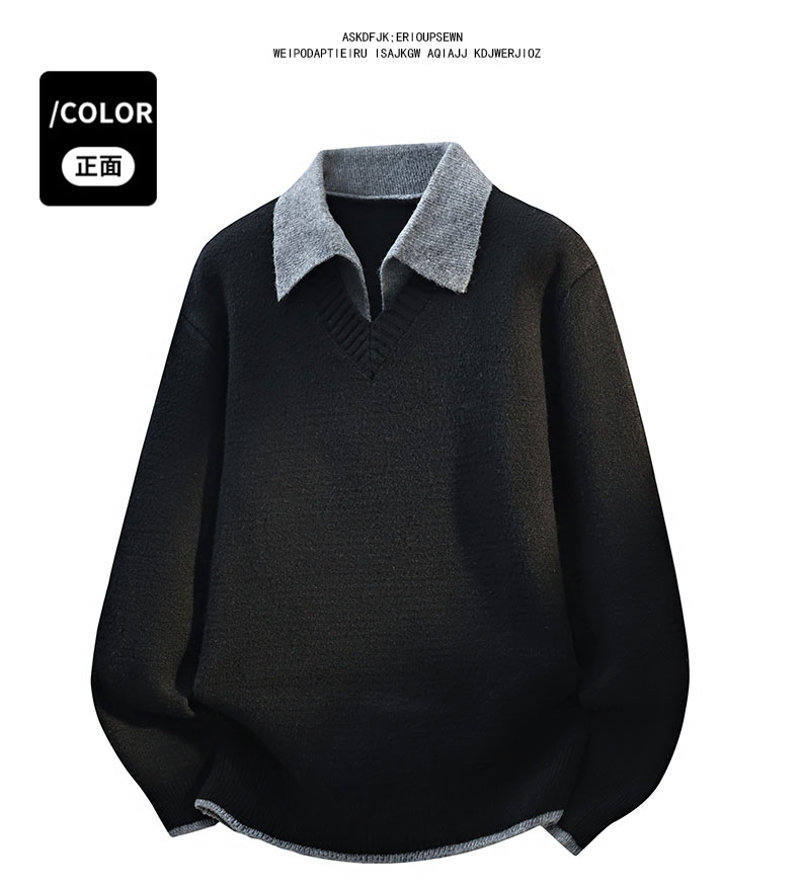 男士秋冬季衬衫领毛衣男士韩版针织衫毛衣男打底衫假两件毛衣男