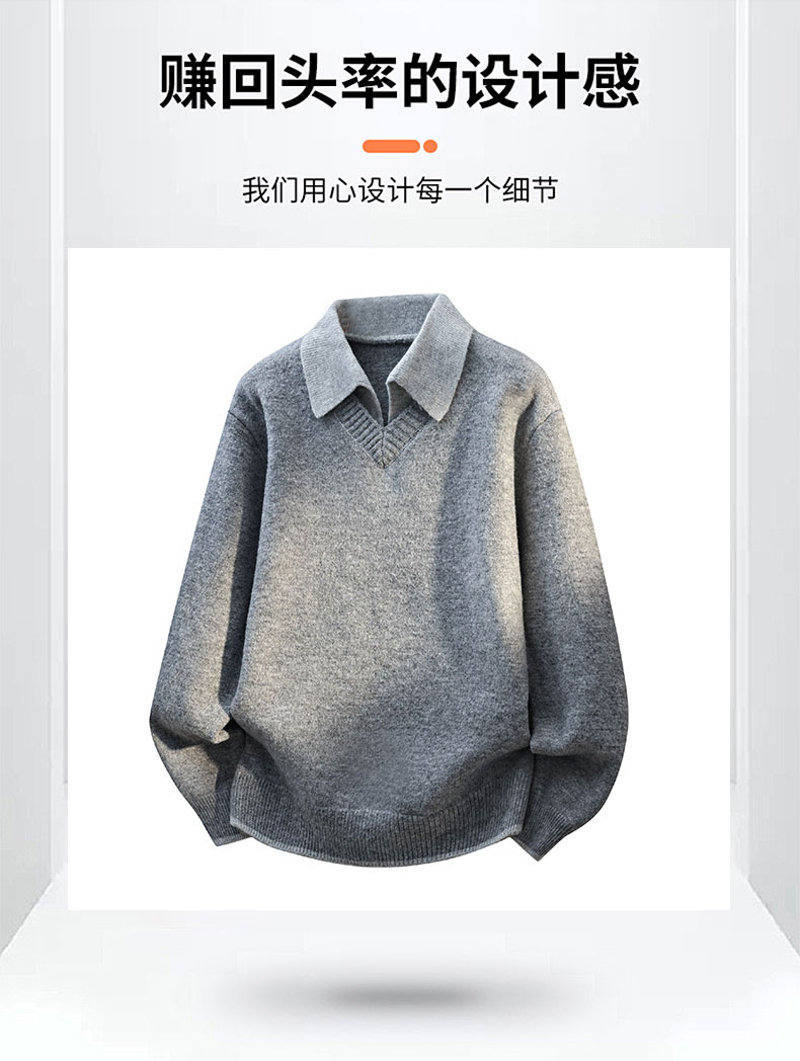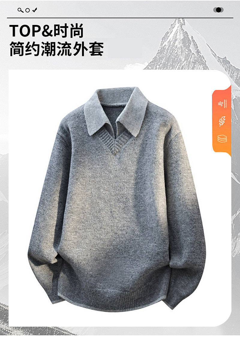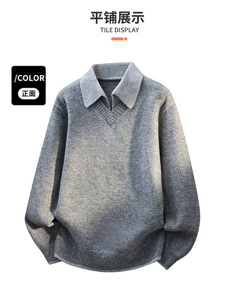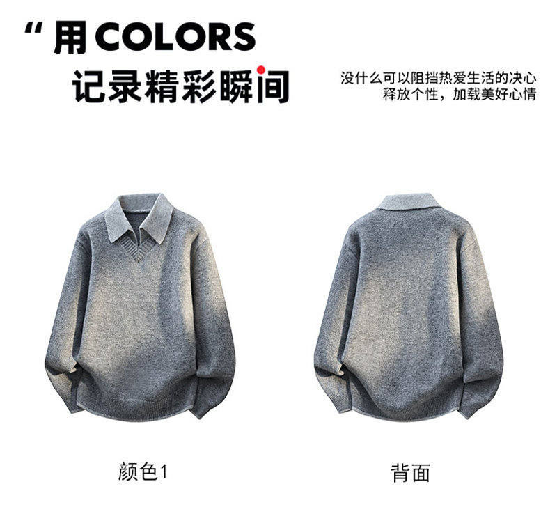 秋季时尚翻领毛衣外套男士针织衫纯色内搭打底衫