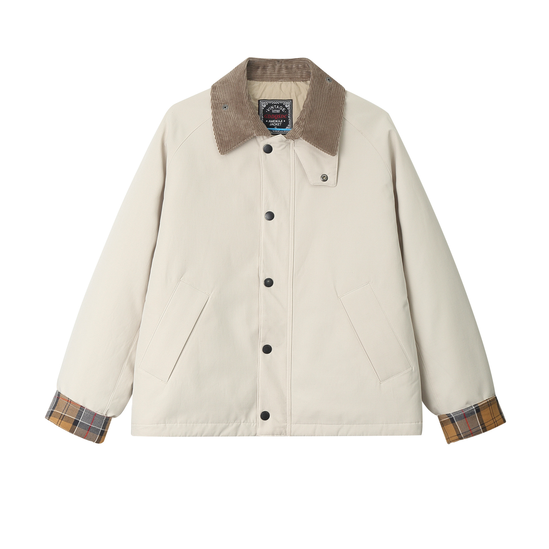 巴恩风夹克翻领格子袖口宽松保暖棉衣棉服男款外套冬季夹克棉服