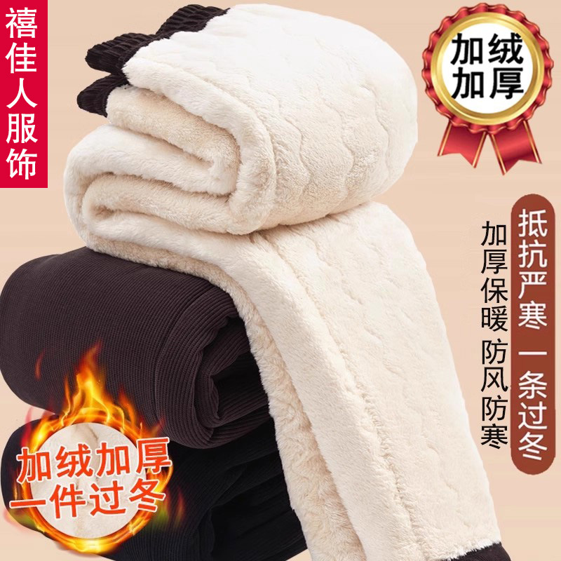 中老年人妈妈冬季棉裤奶奶加绒加厚裤子女秋冬灯芯绒外穿大码夹棉