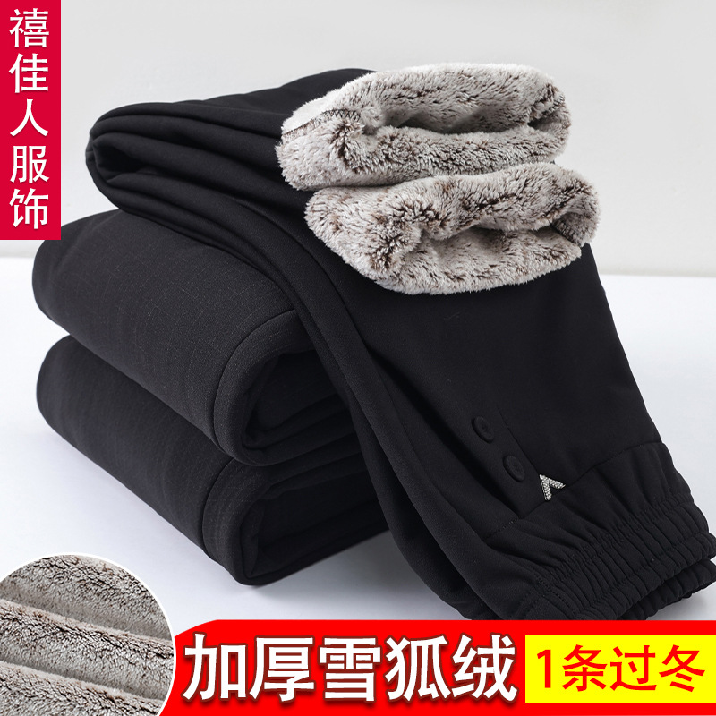 お母さんのズボンの冬の中でお年寄りのズボンとベルベットは厚くてゆったりしています。