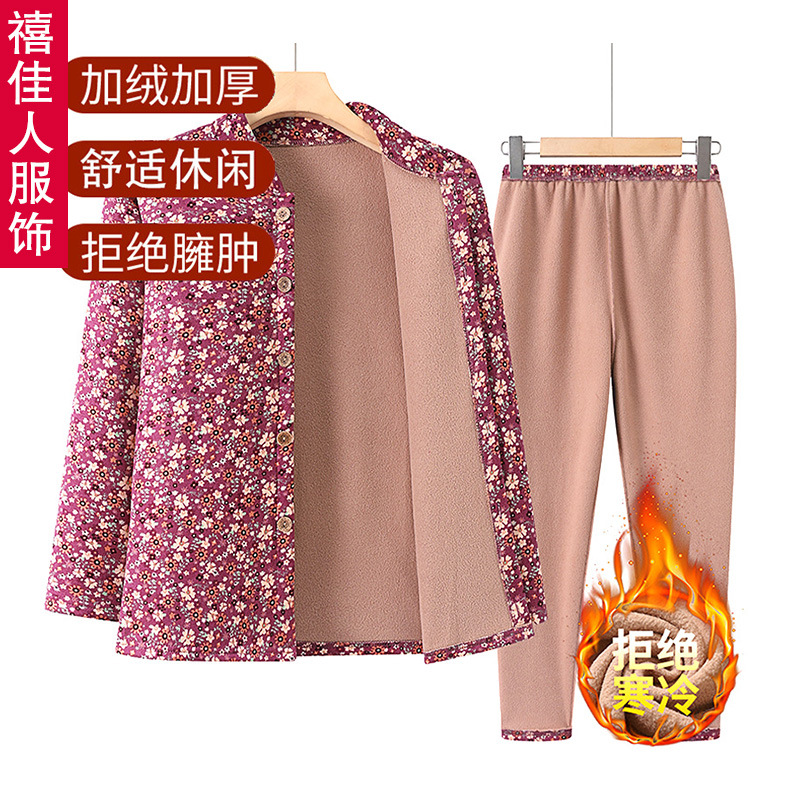 中老年人女保暖内衣套装奶奶秋装毛衣加绒加厚老太太开衫老人外套