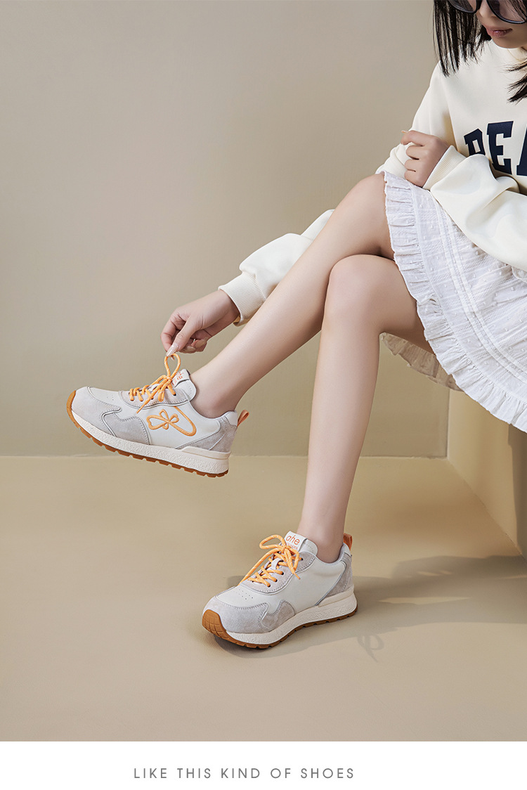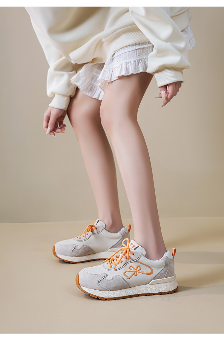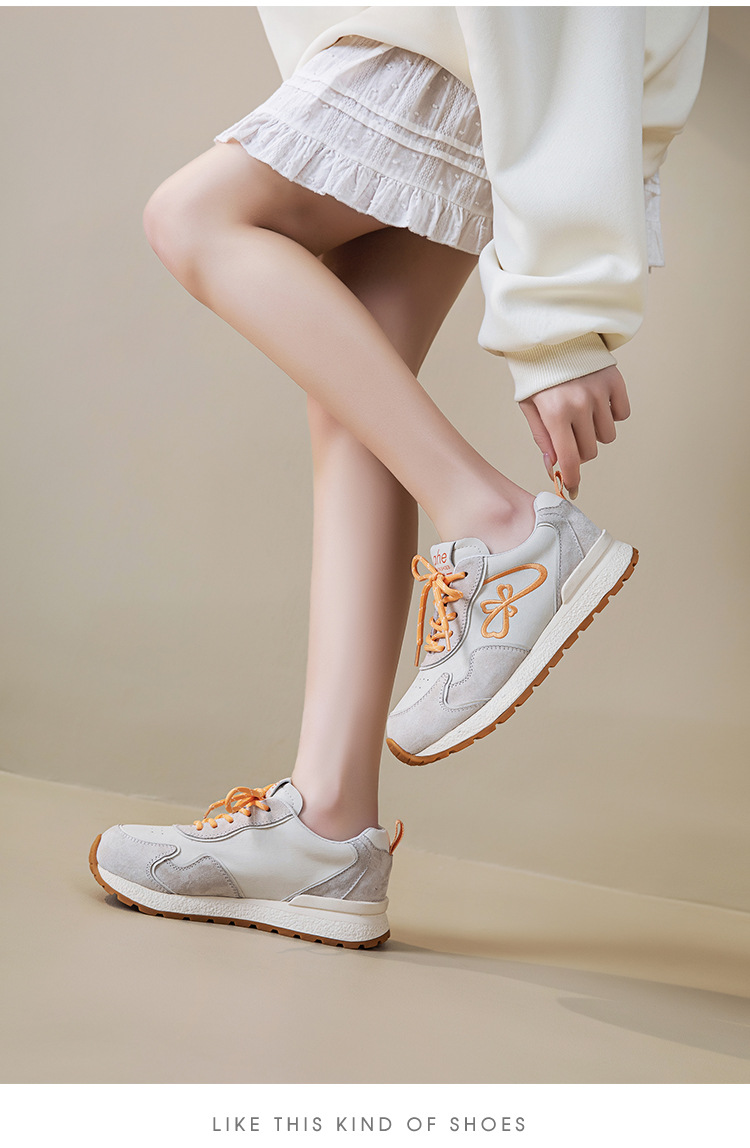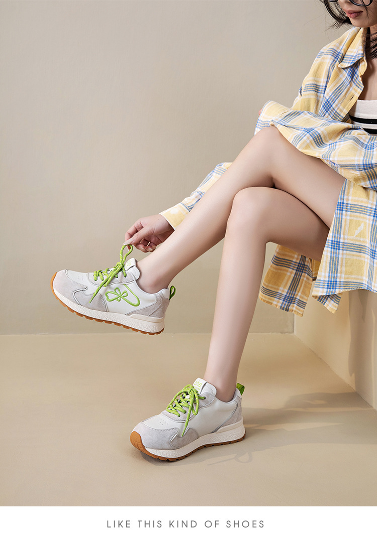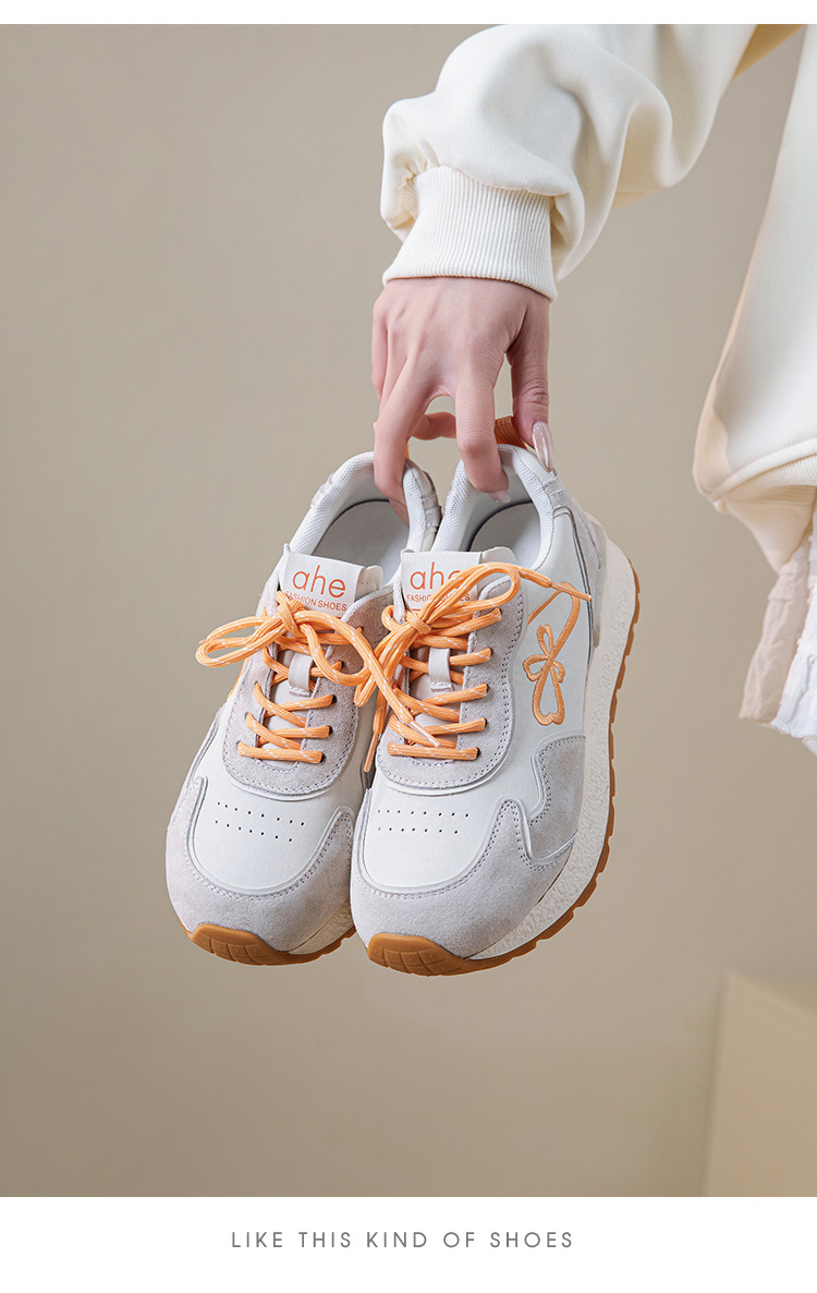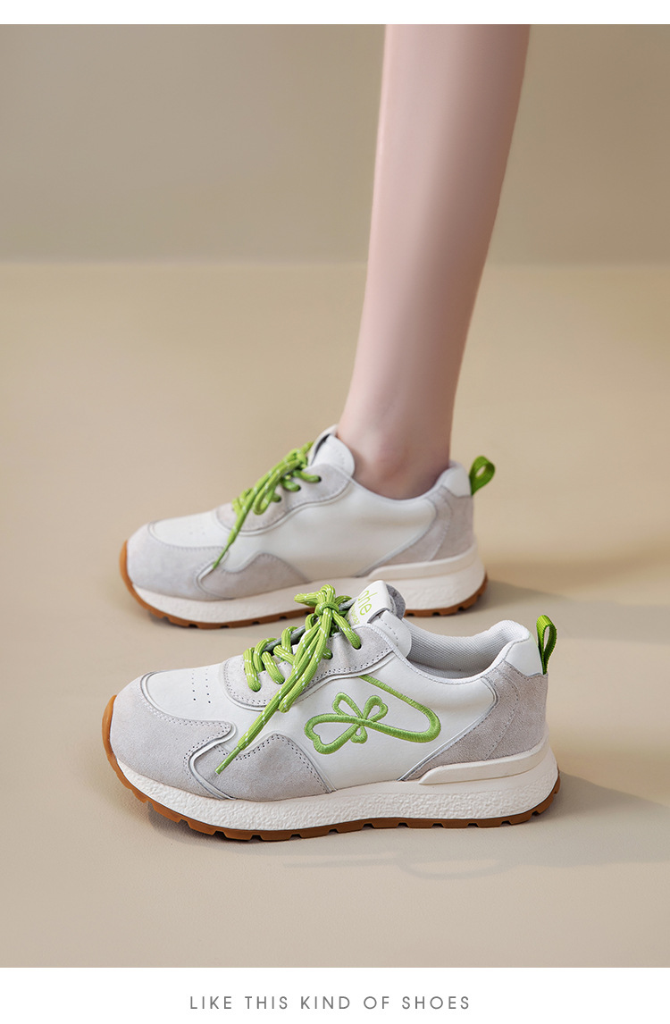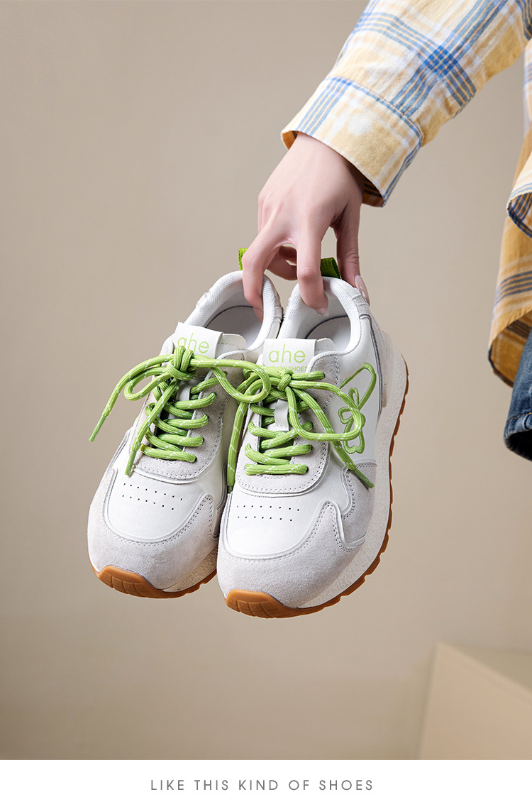 牛皮小白鞋女2026春秋新款软底系带透气内增高板鞋时尚休闲运动鞋
