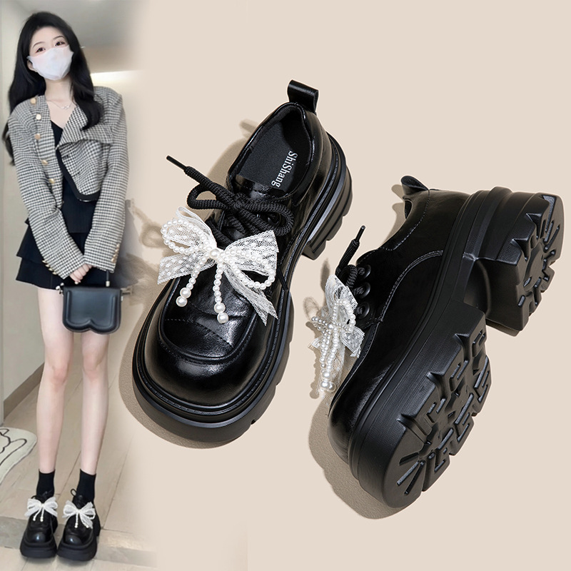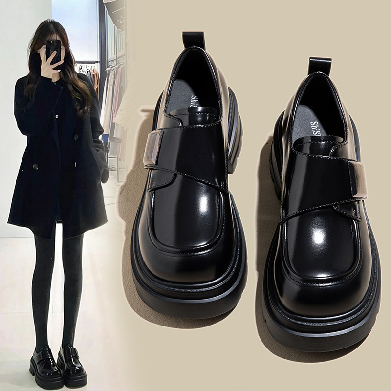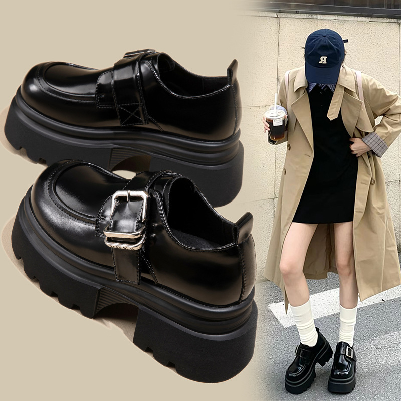 春秋季时尚新款复古英伦风小皮鞋女小个子增高百搭厚底粗跟乐福鞋