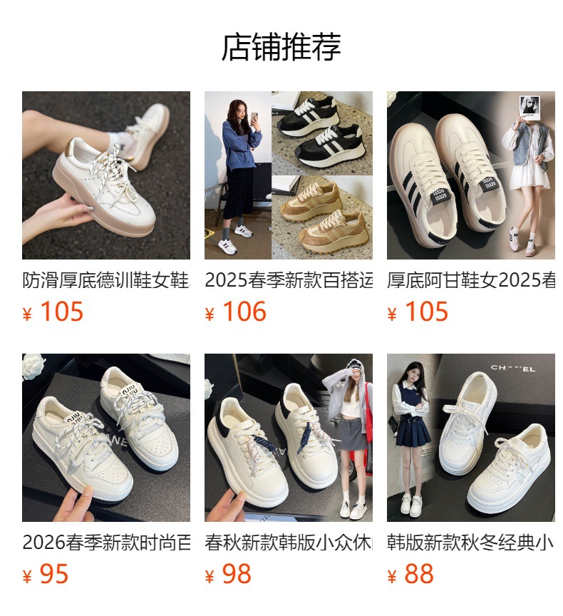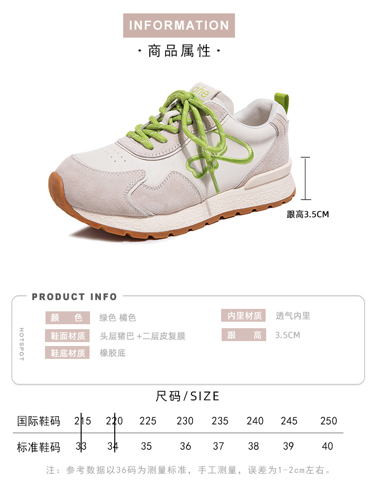 2026春季新款时尚百搭厚底小白鞋增高运动休闲防滑板鞋复古德训鞋