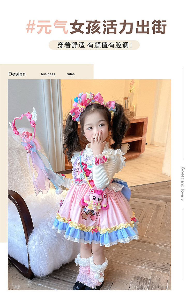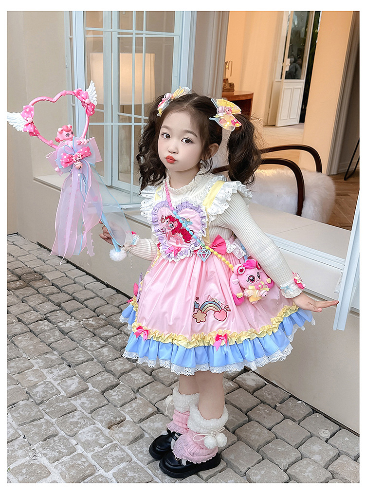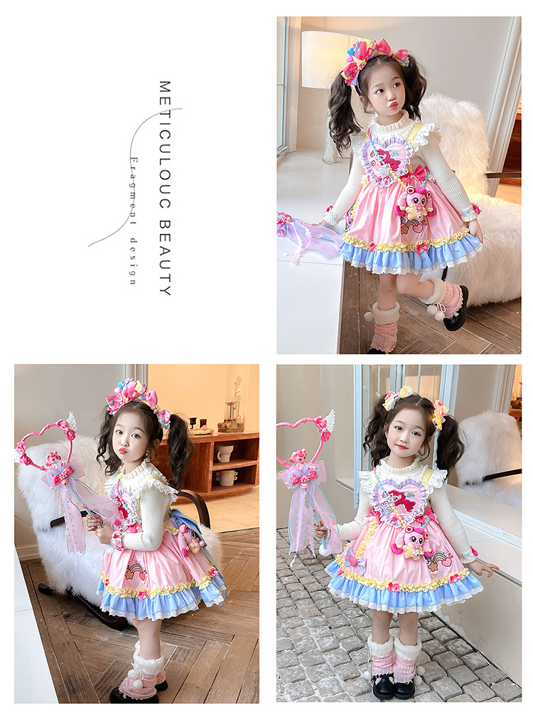 女童卡通洋气洛丽塔吊带裙2025春秋新款女宝宝卡通生日公主小裙子