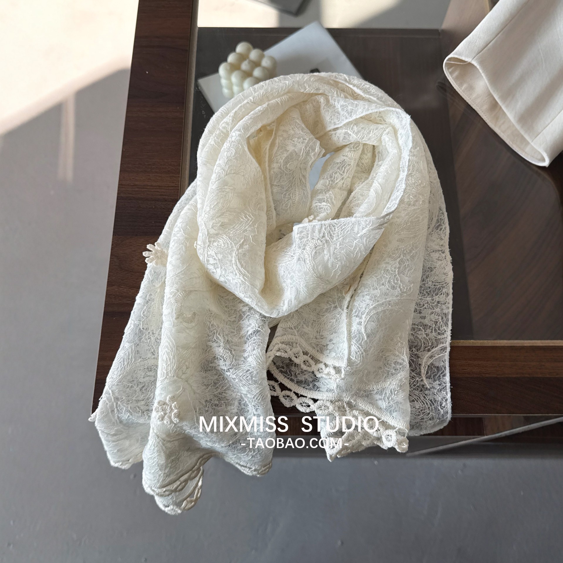 韩国订单~森系提花刺绣花边镂空蕾丝百搭丝巾春秋时尚柔软洋气纱