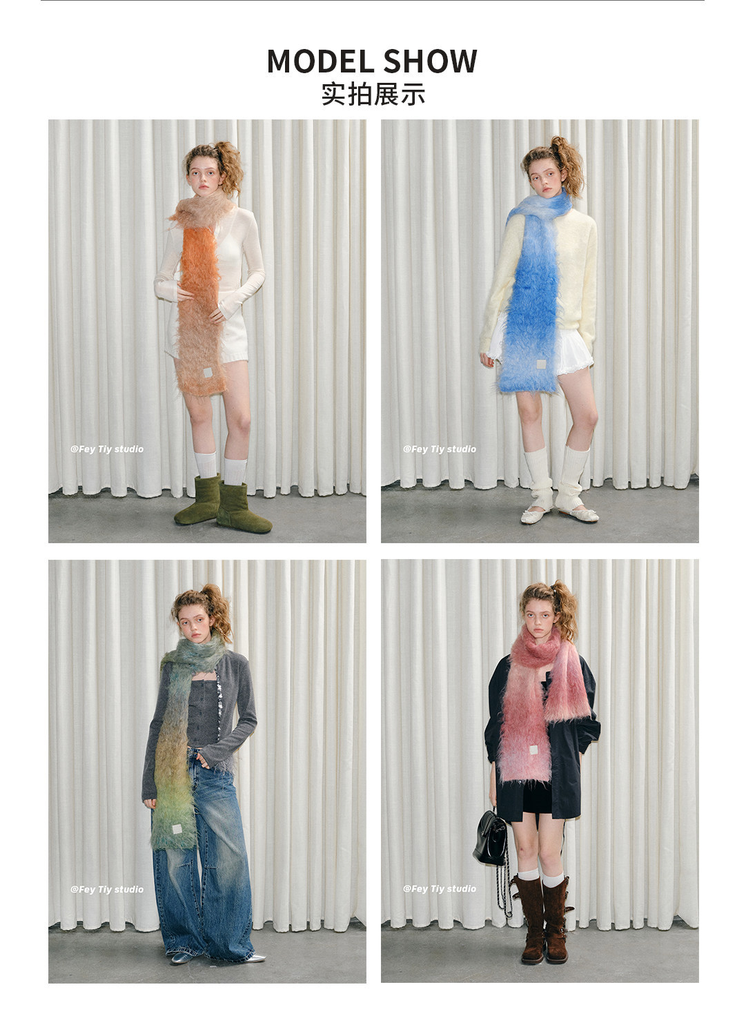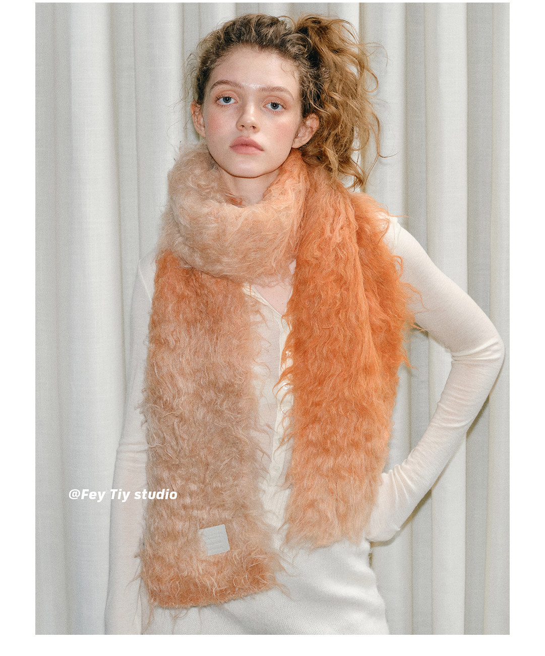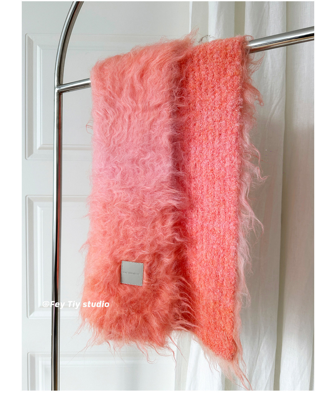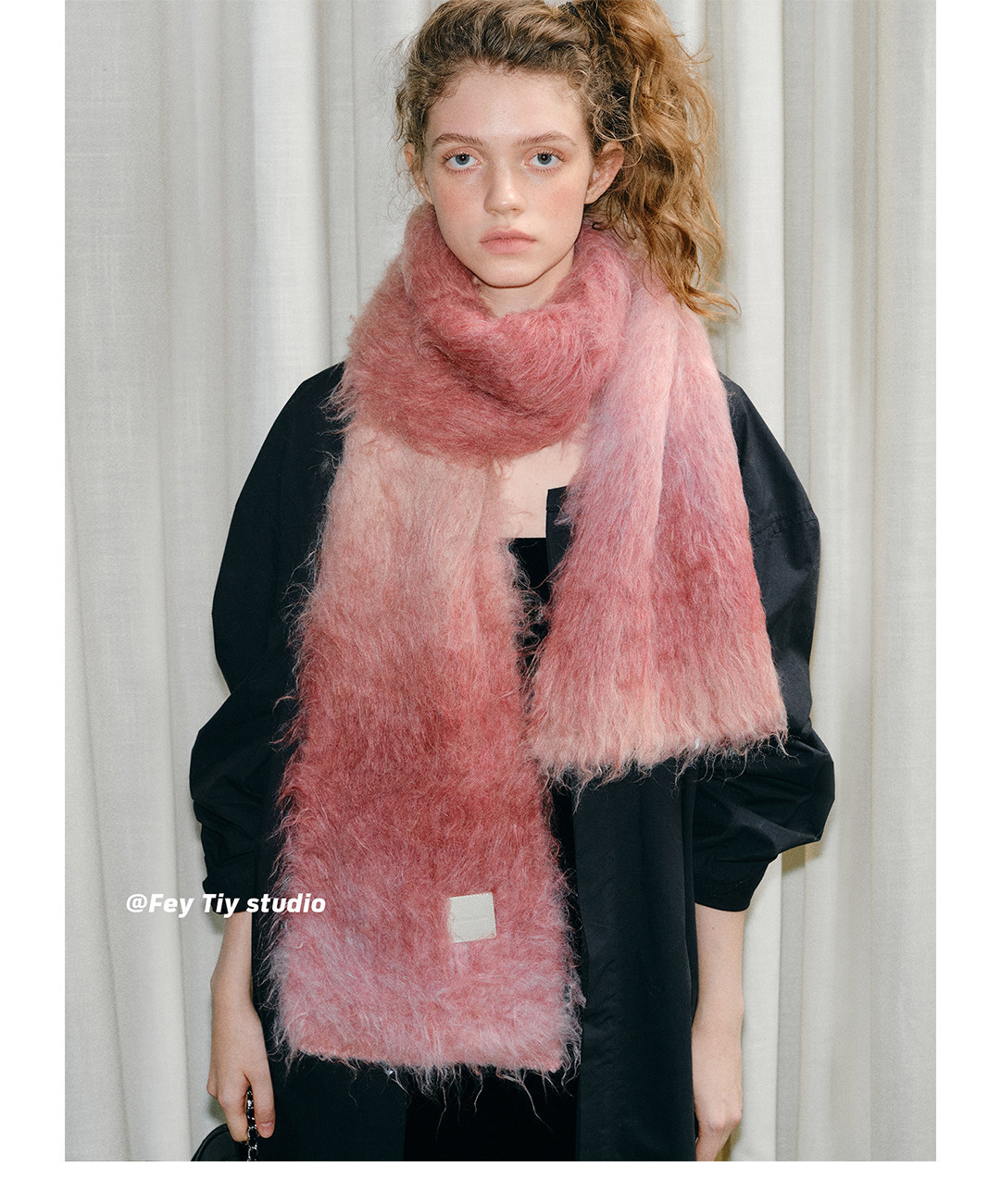 出口欧洲单~新款秋冬羊毛拉毛针织围巾重磅蓬松慵懒渐变围脖百搭