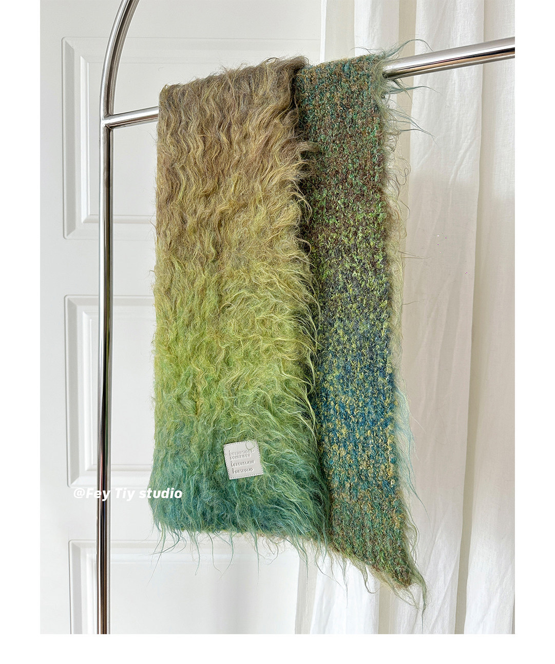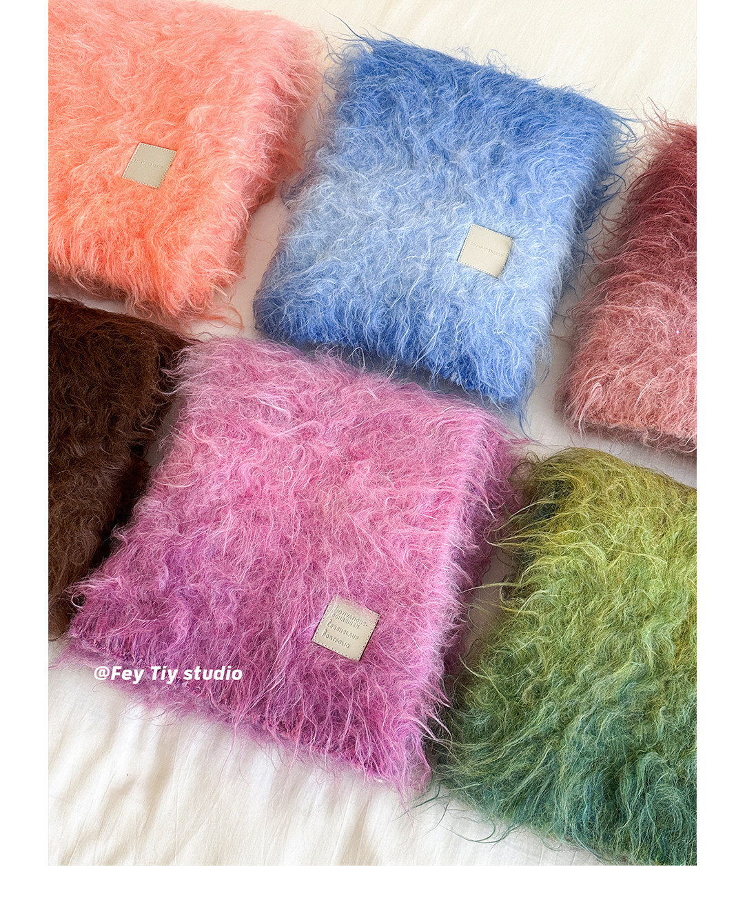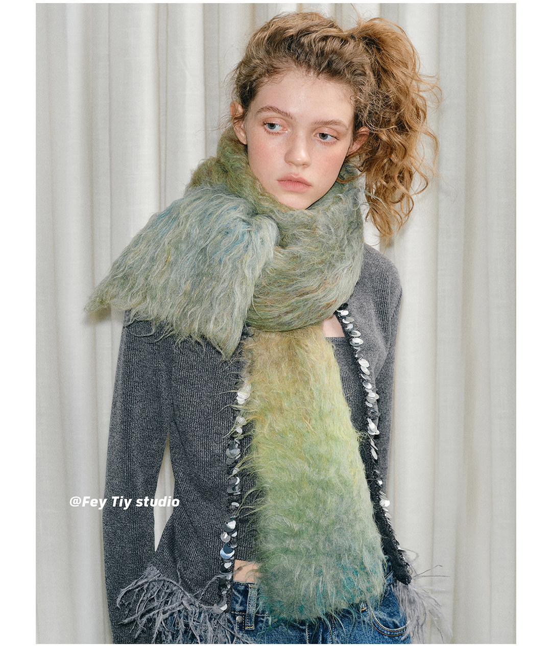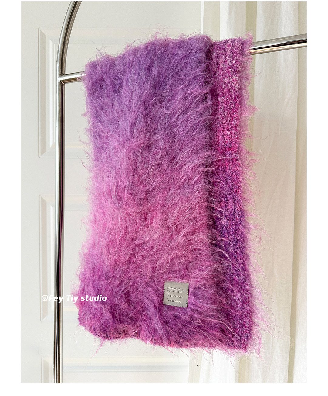 出口欧洲单~新款秋冬羊毛拉毛针织围巾重磅蓬松慵懒渐变围脖百搭