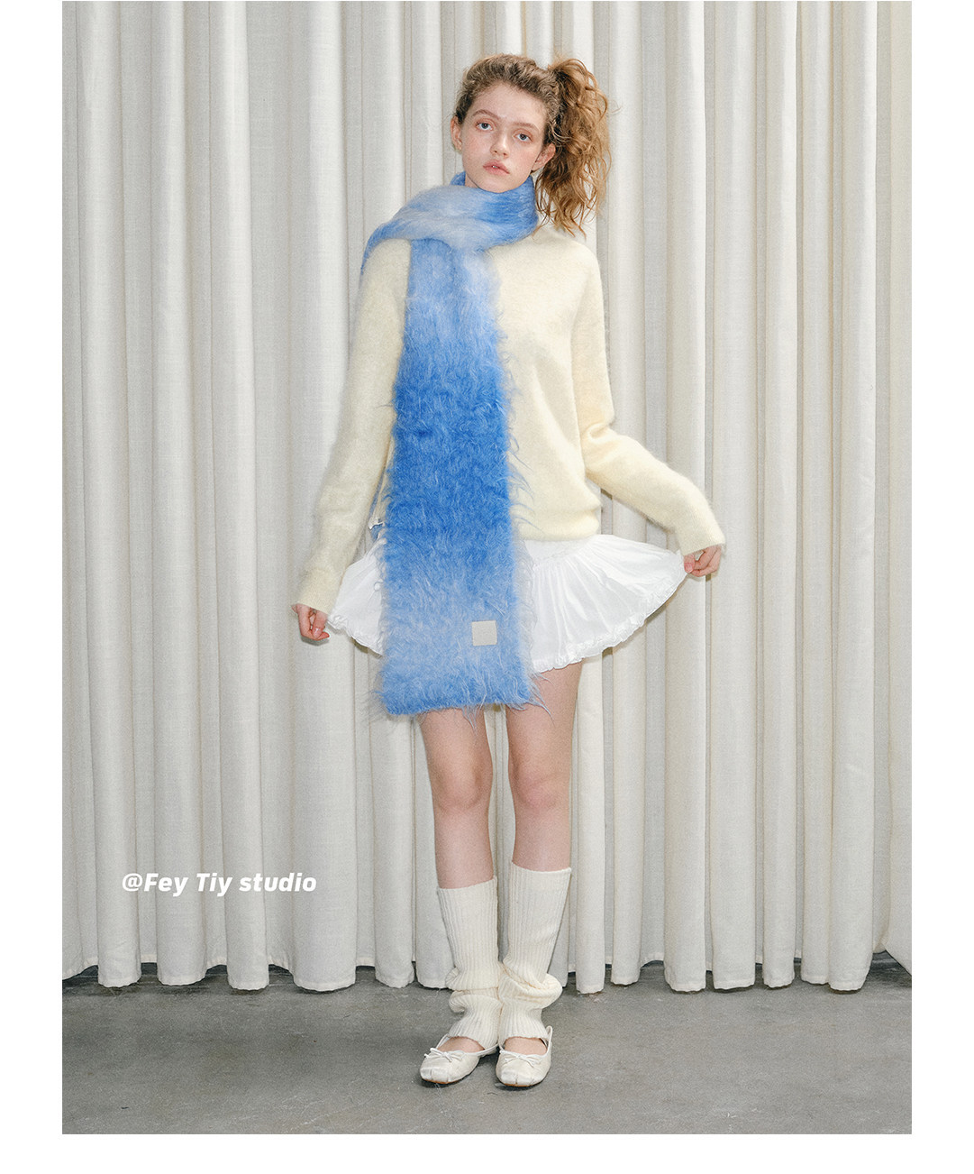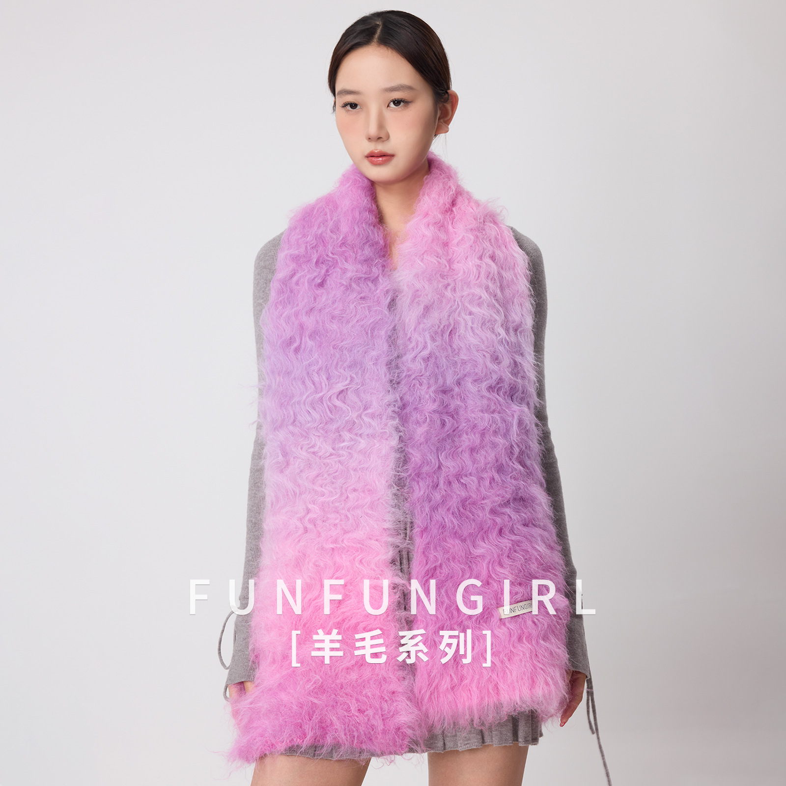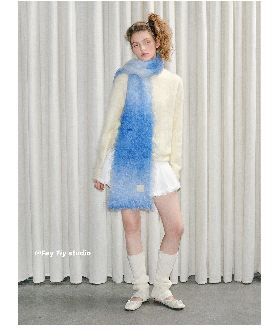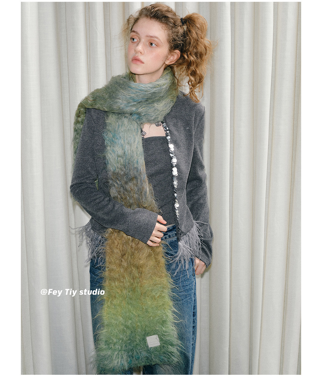 出口欧洲单~新款秋冬羊毛拉毛针织围巾重磅蓬松慵懒渐变围脖百搭