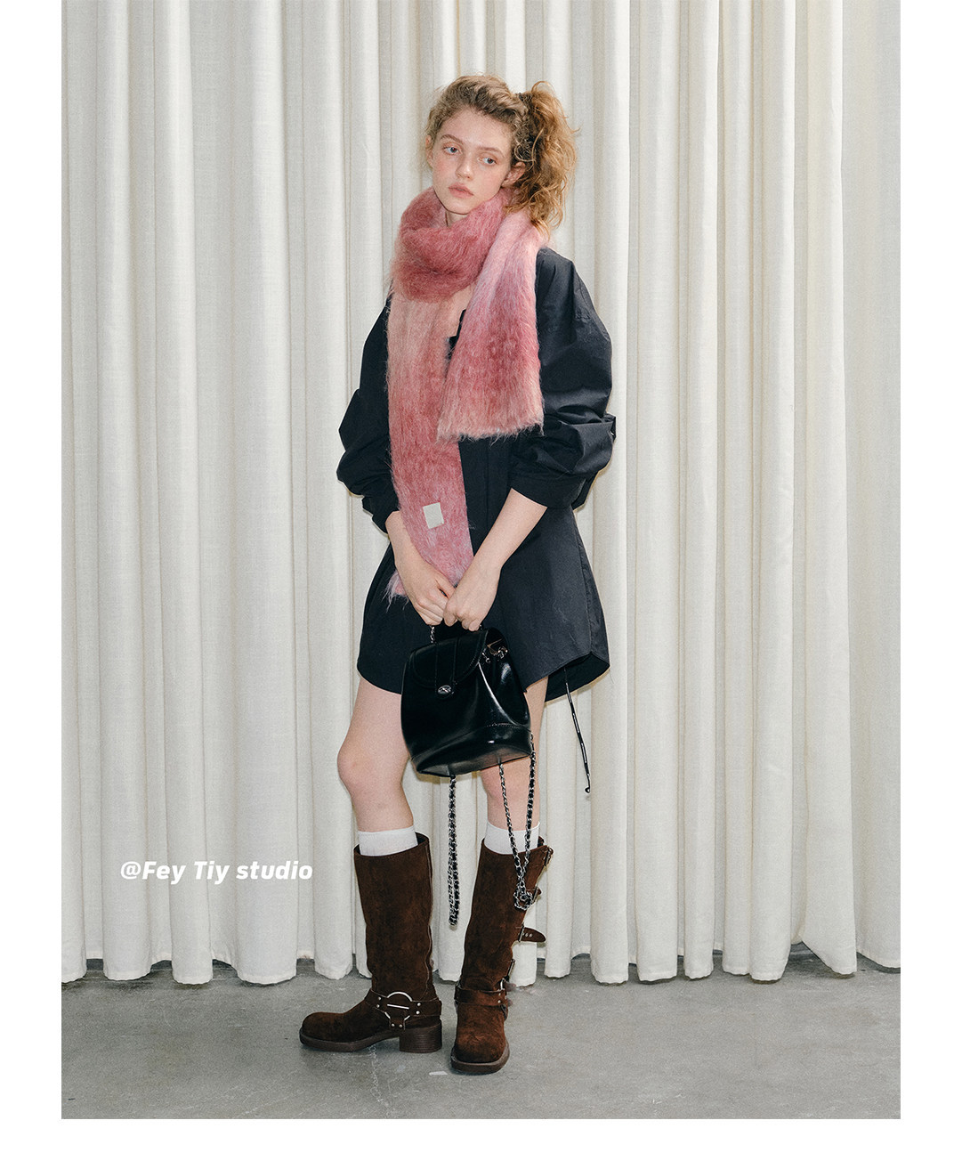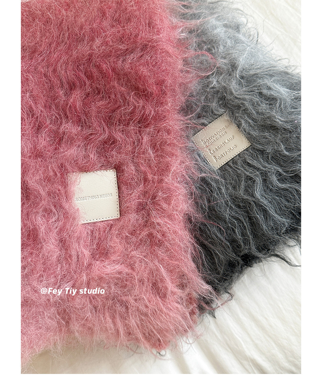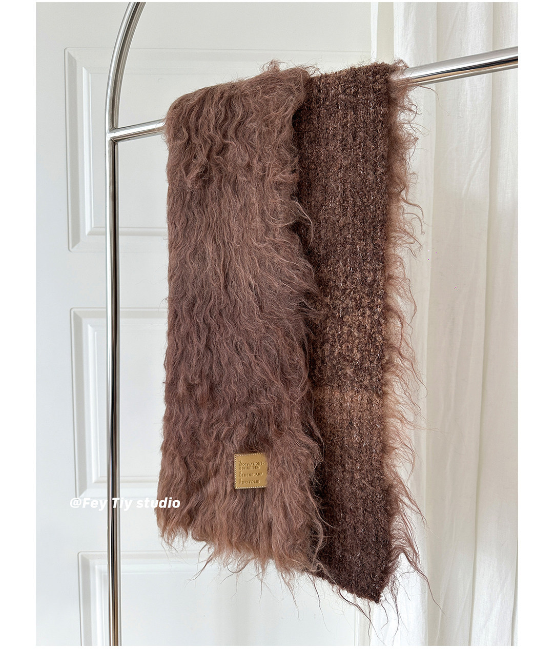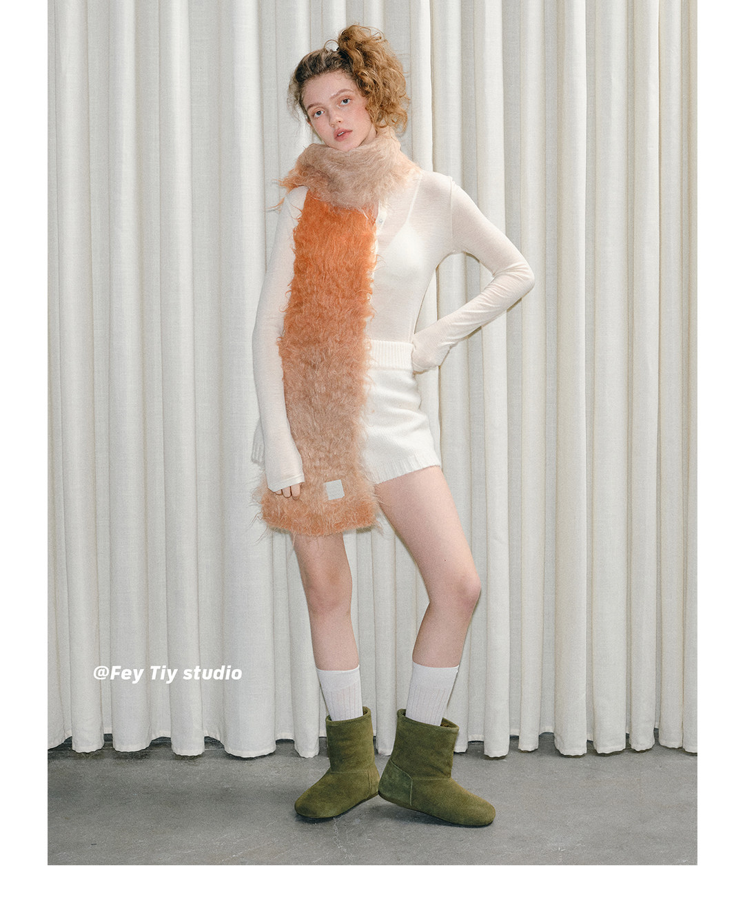 出口欧洲单~新款秋冬羊毛拉毛针织围巾重磅蓬松慵懒渐变围脖百搭