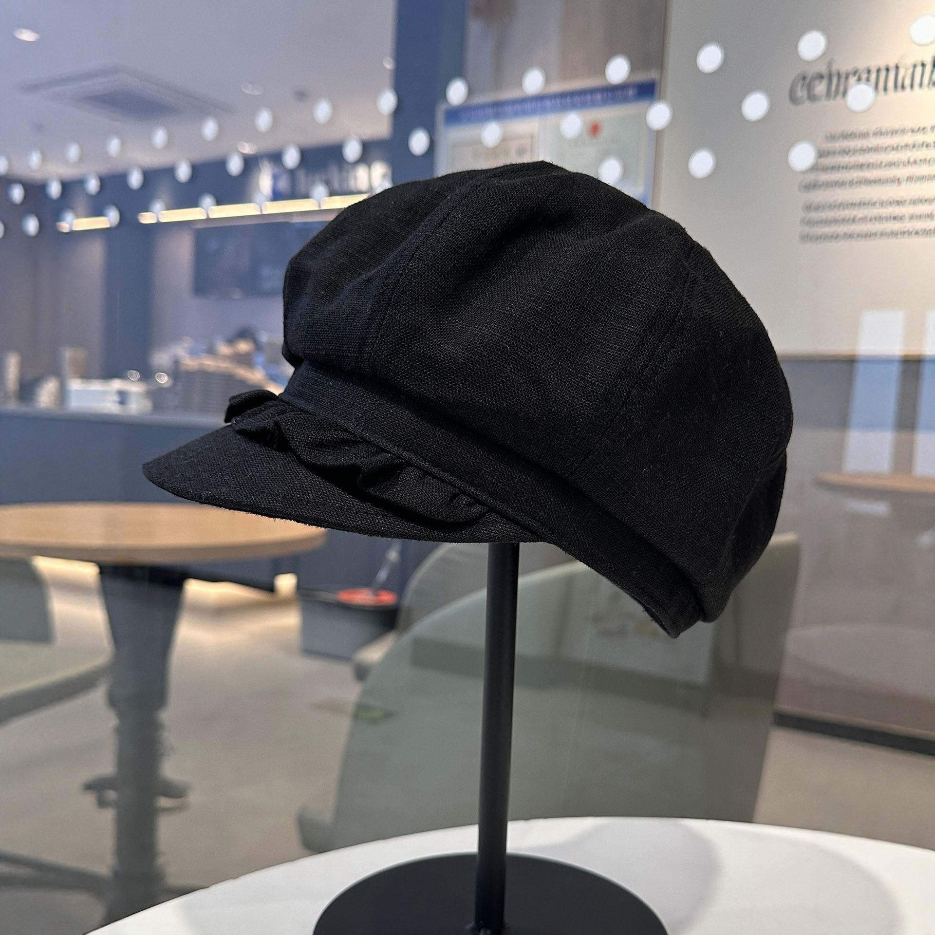 高品质出口日单~褶皱边亚麻贝雷帽女春夏透气防晒画家帽时尚百搭