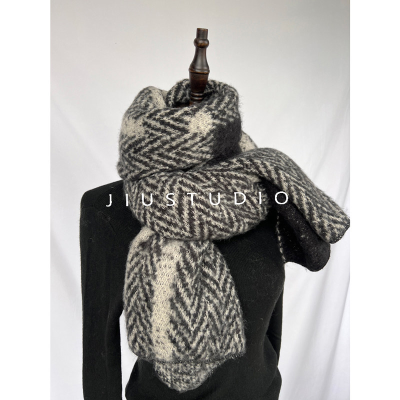 出口欧洲单~黑色系列yyds气质不过时拉毛感围巾秋冬加厚披肩学生