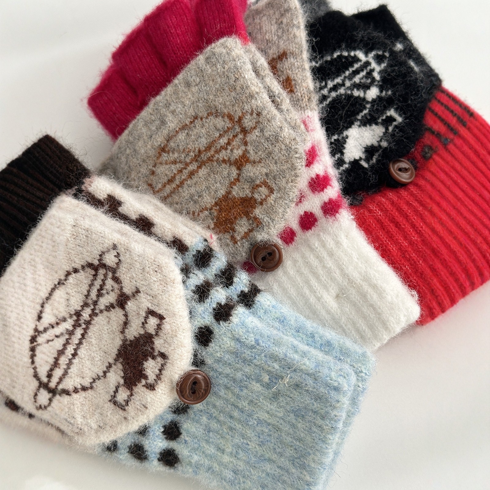 高货出口日单~冬季保暖高级感纯色土星刺绣手套分指保暖针织手套
