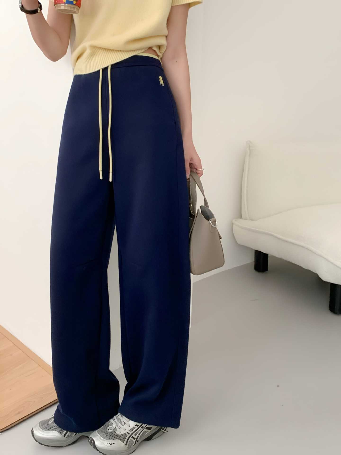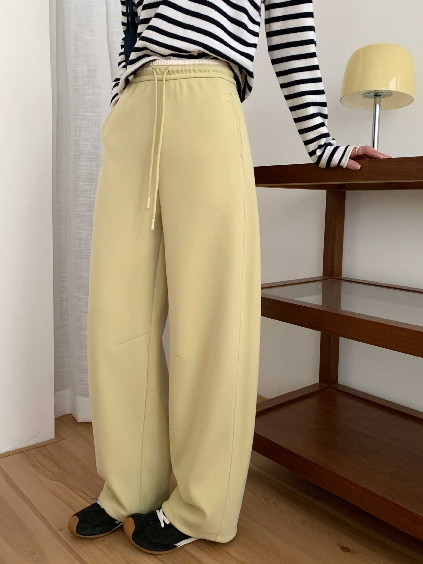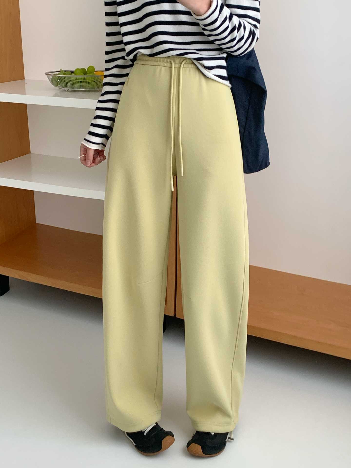 秋冬新款阔腿裤女垂感高腰显瘦休闲裤子慵懒韩系抽绳直筒裤