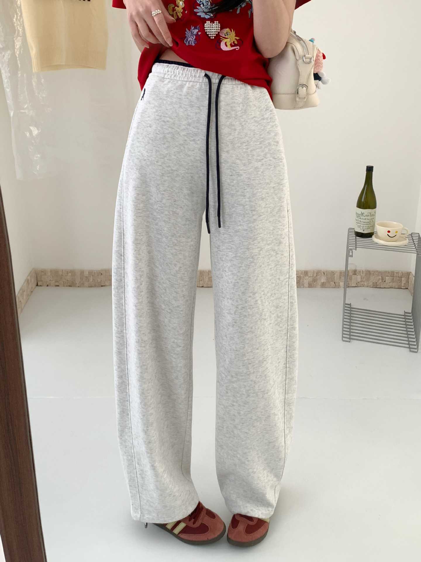 美式潮牌灰色运动裤女春秋冬季宽松慵懒风休闲两穿裤子显瘦直筒裤