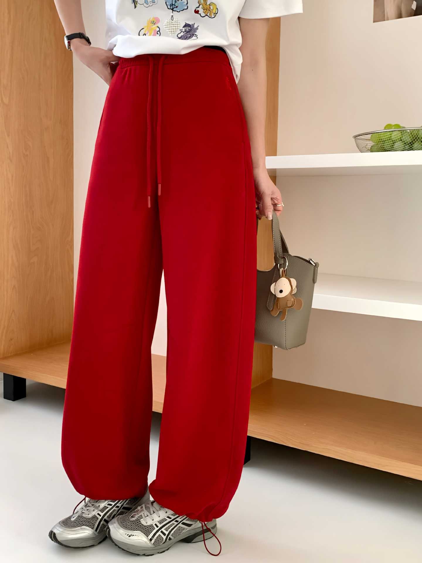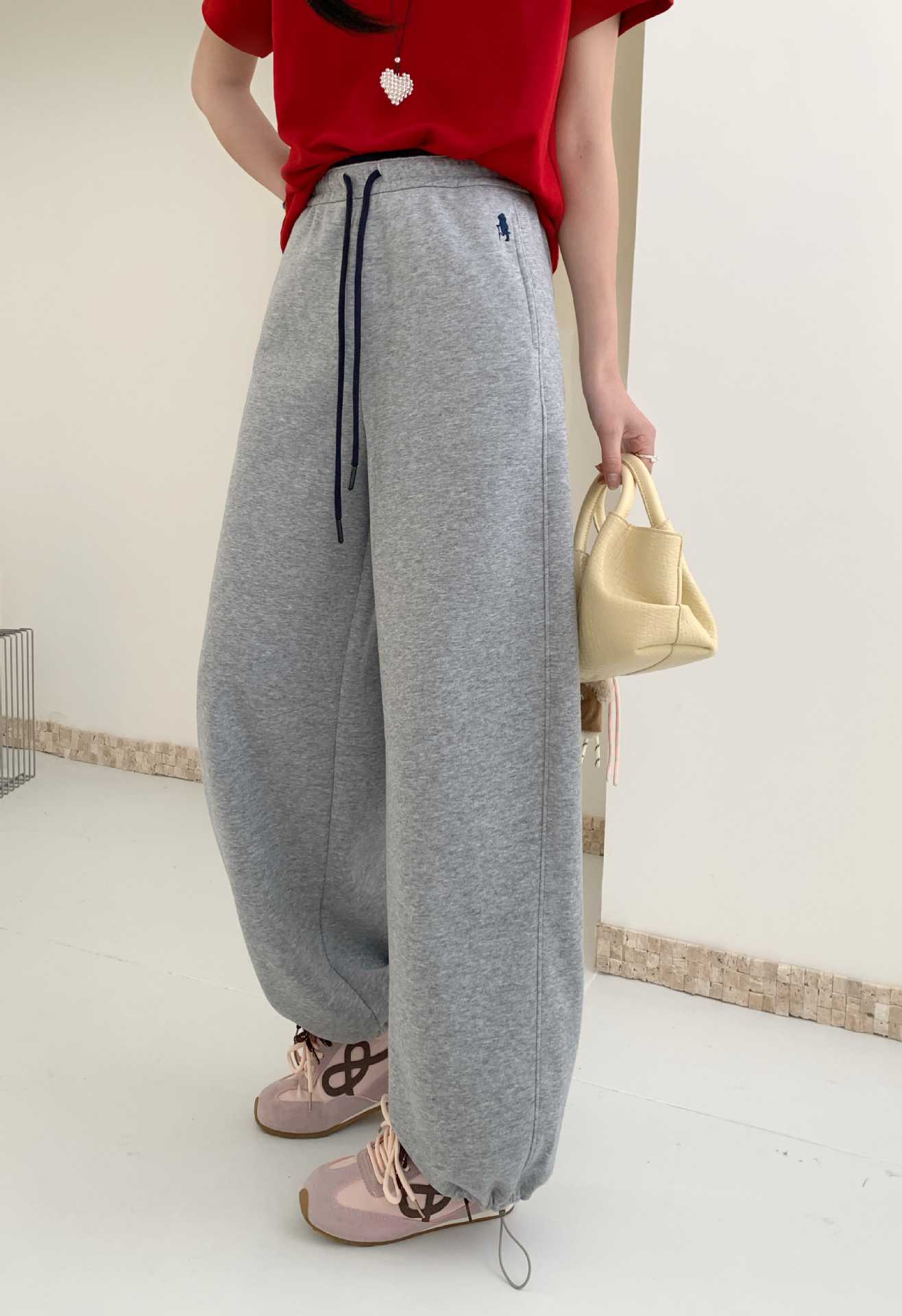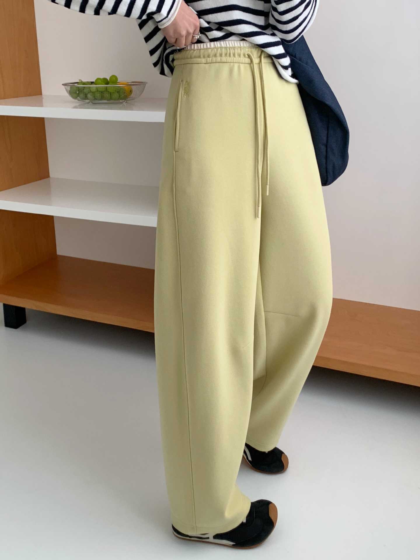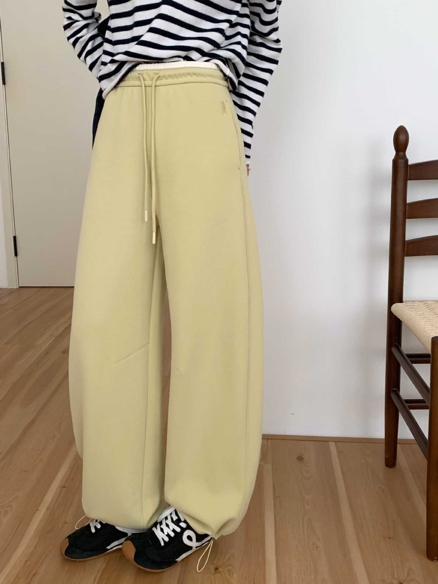 加绒阔腿香蕉裤卫裤女束脚裤高腰宽松小熊刺绣休闲直筒运动裤长裤