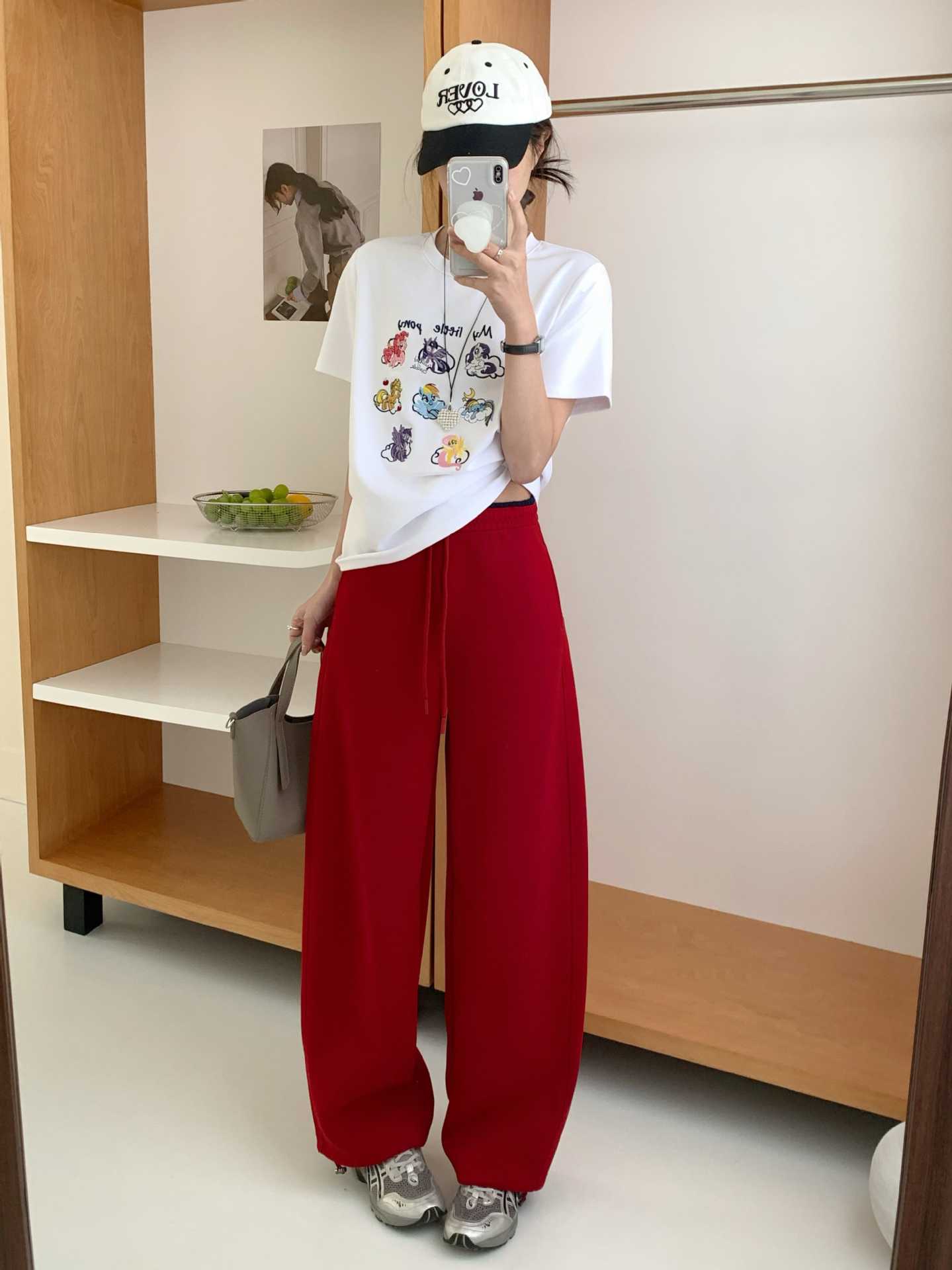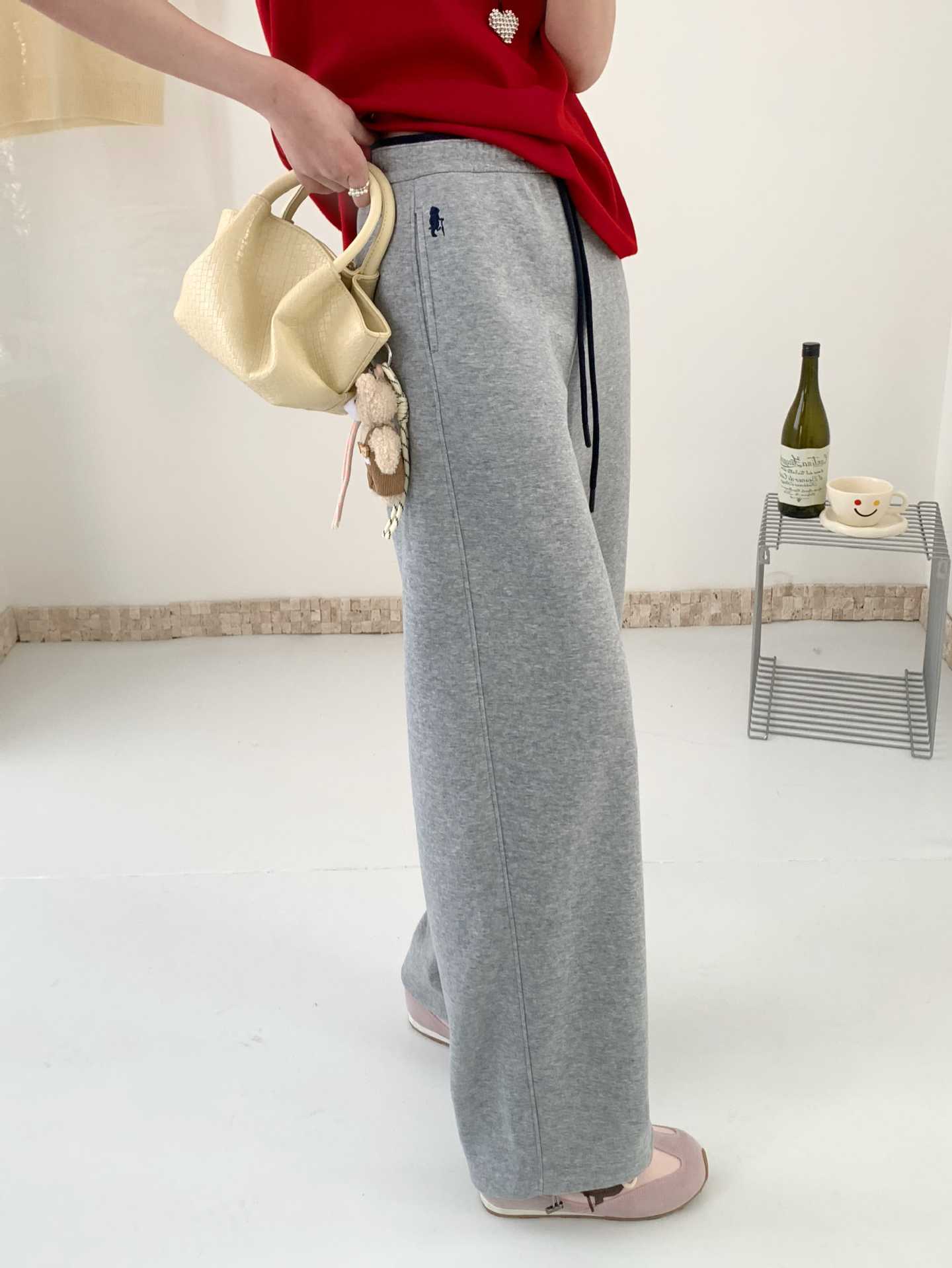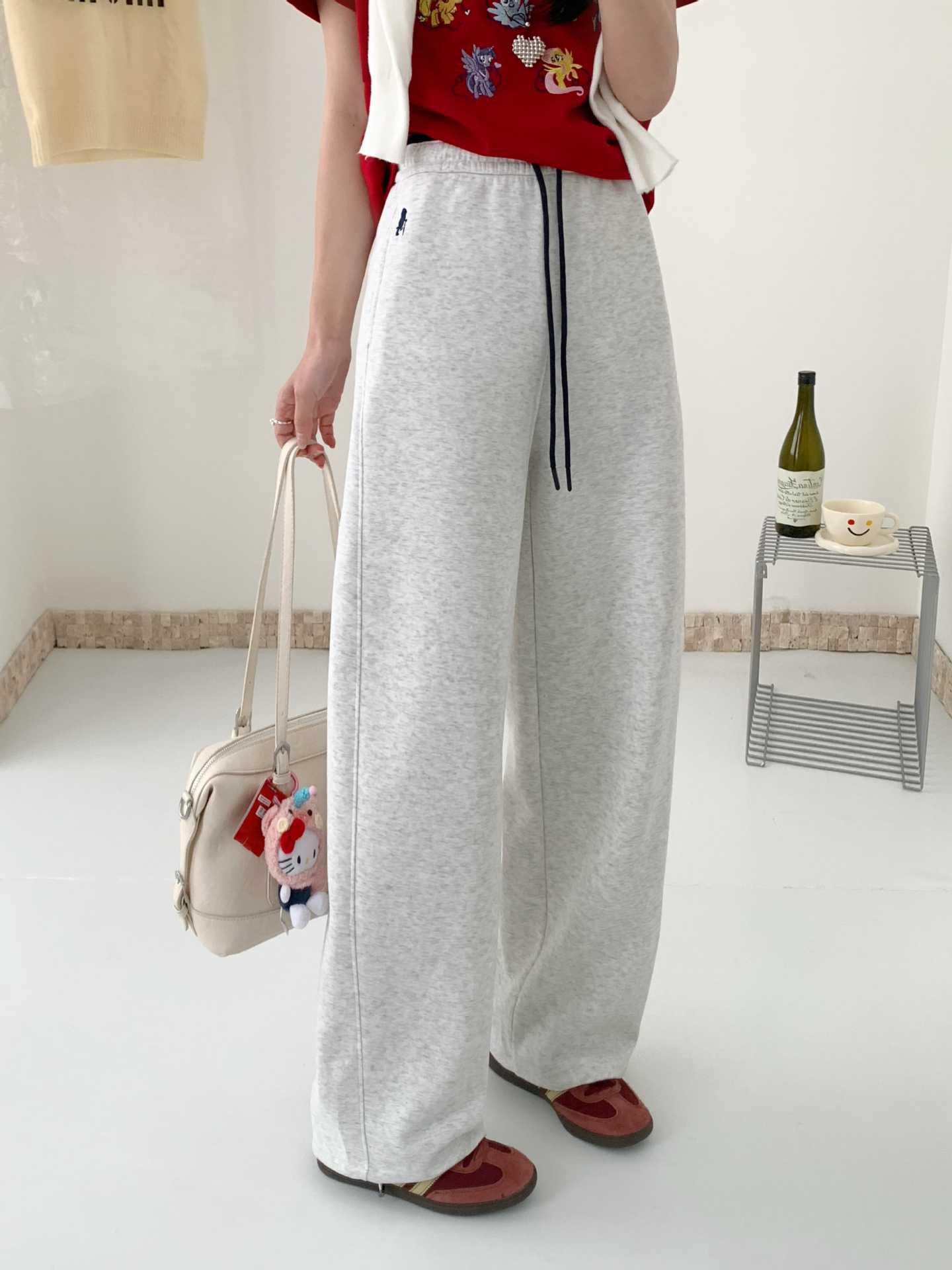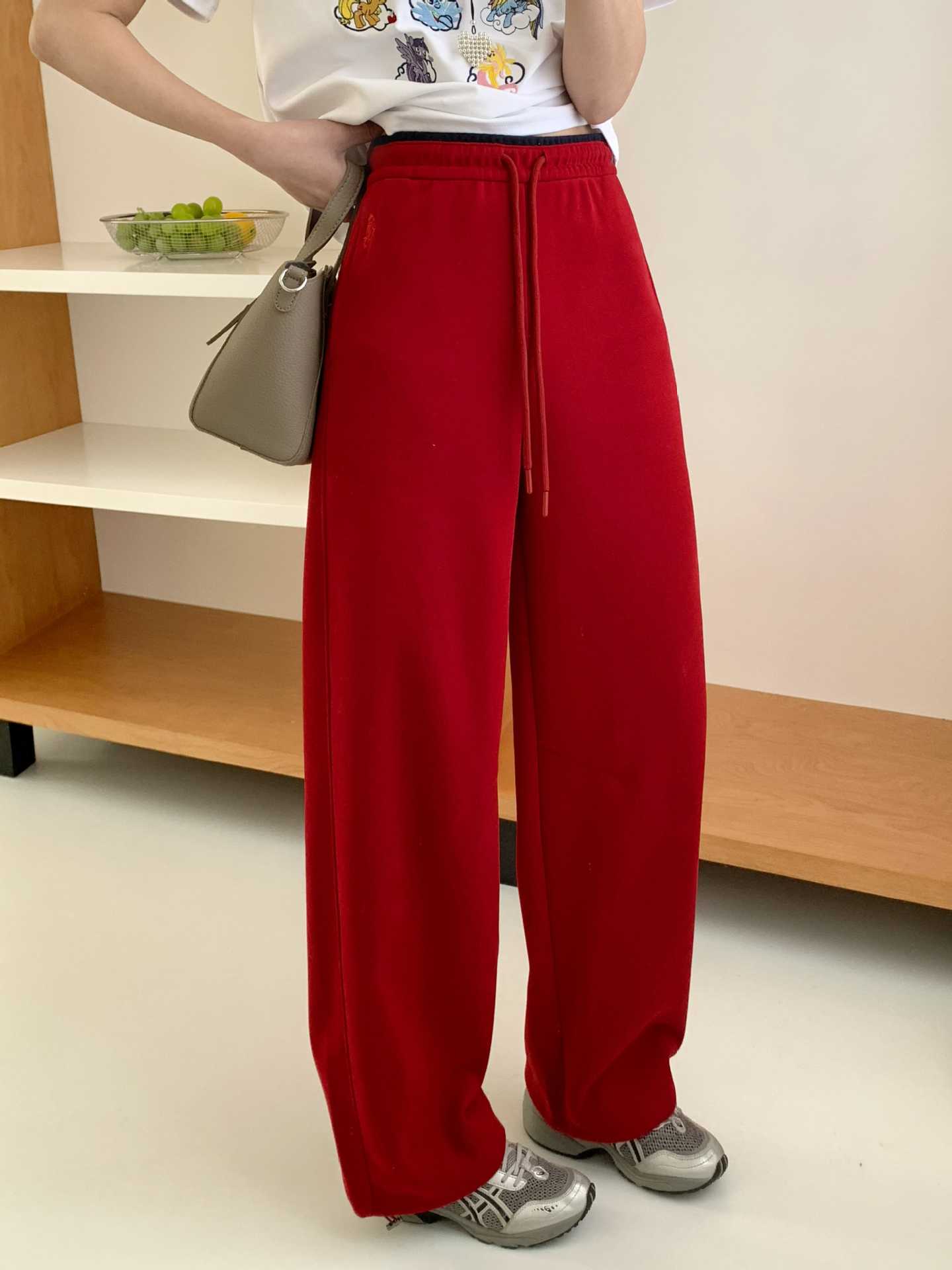 春秋季运动长裤女显瘦遮肉长款高腰直筒裤小众潮牌ins小熊阔腿裤