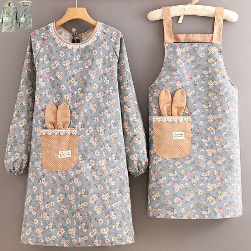 ウサギのキャンバスの長袖のエプロンの台所の料理の女性の新型のファッションの韓国版の通気性の清潔なカバーの作業服