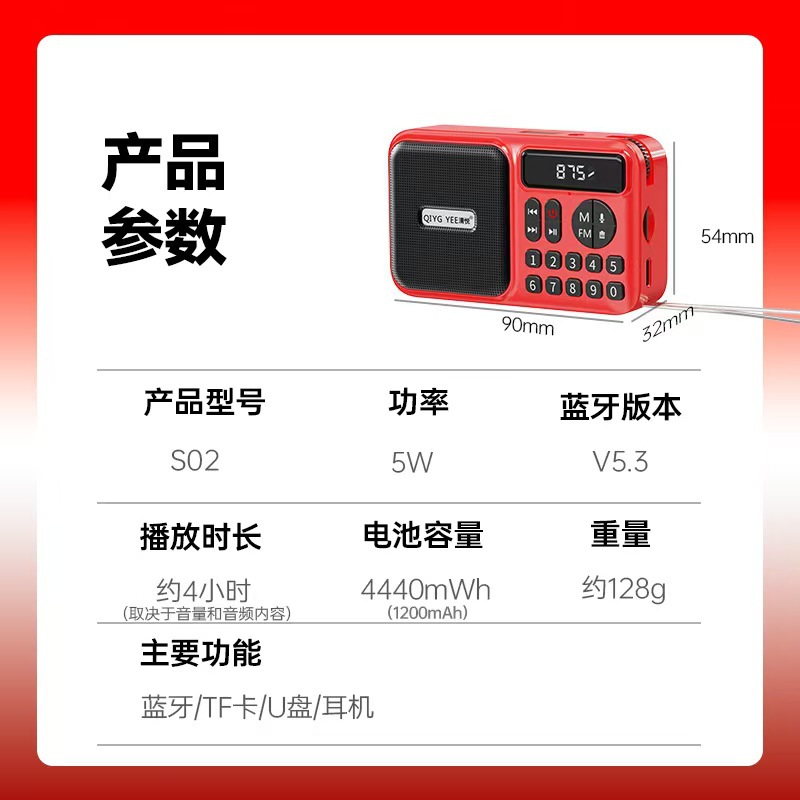 清悦S02迷你老人便携迷你蓝牙音箱多功能听戏插卡收音机音乐播放