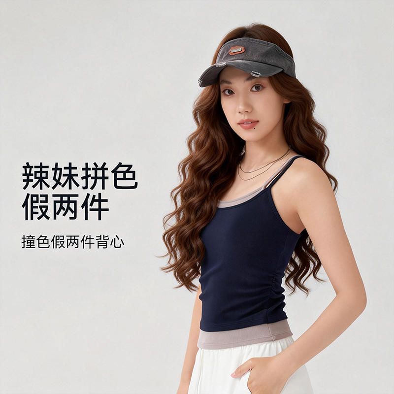 2026春季新款假两件自带胸垫气质纯色荡领户外运动背心紧身上衣女