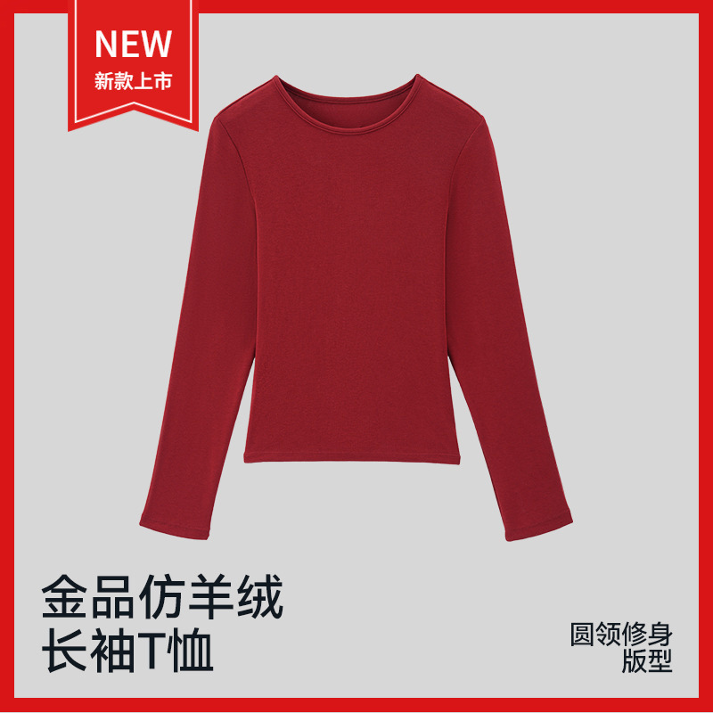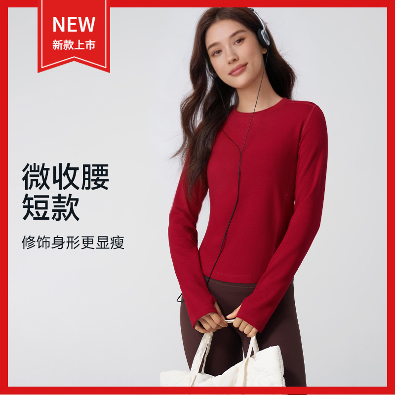 2026春季新款圆领修身绵柔舒适仿羊绒户外运动长袖T恤打底上衣女