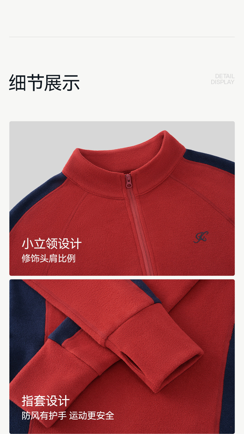 2026秋冬新款撞色双面德绒亲肤防风保暖修身休闲户外运动长袖上衣