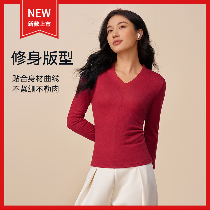 2026新款户外运动舒适保暖长袖V领针织打底衫修身显瘦针织上衣女