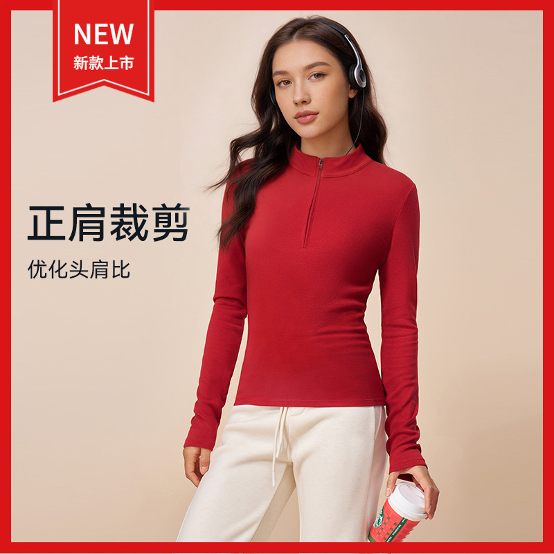 2026春季舒适仿羊绒户外运动保暖小立领打底衫运动服长袖上衣女
