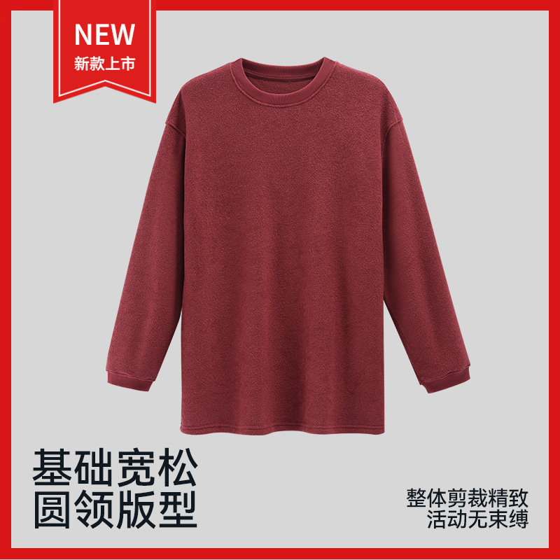 2026新款秋冬保暖毛巾加绒宽松圆领落肩长袖卫衣休闲大版型T恤