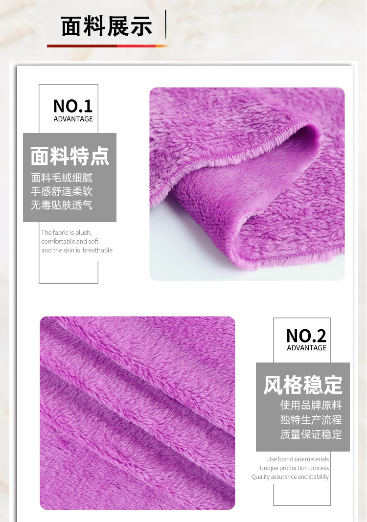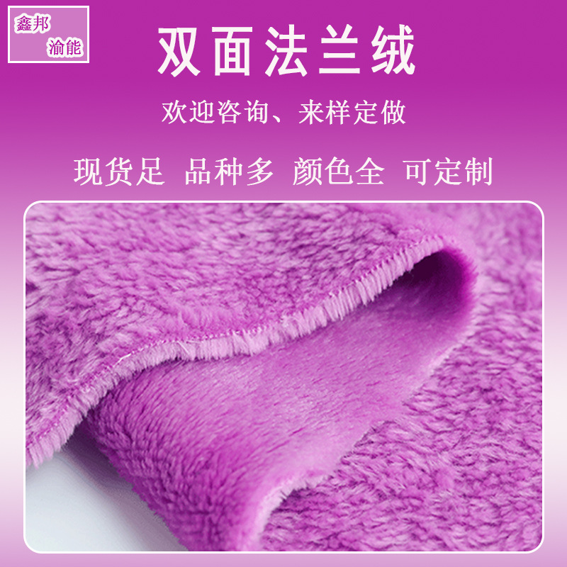 现货批发双面法兰绒全涤珊瑚绒布料毛巾布干发帽服装毛毯吸水面料