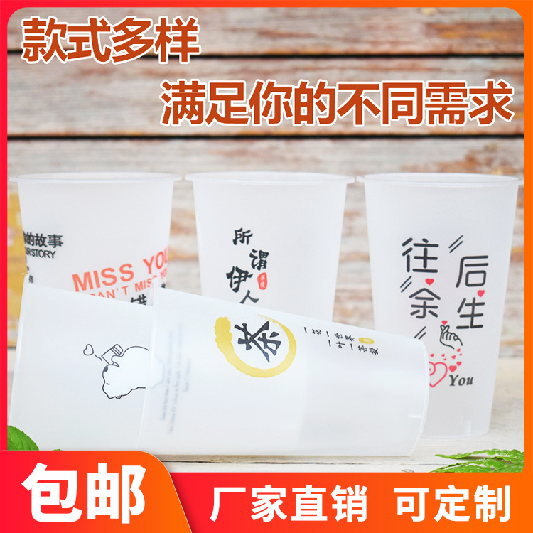 使い捨てミルクティーカップフロスト厚い冷たい飲み物プラスチックカップ蓋付き透明射出カップ商用印刷ロゴ