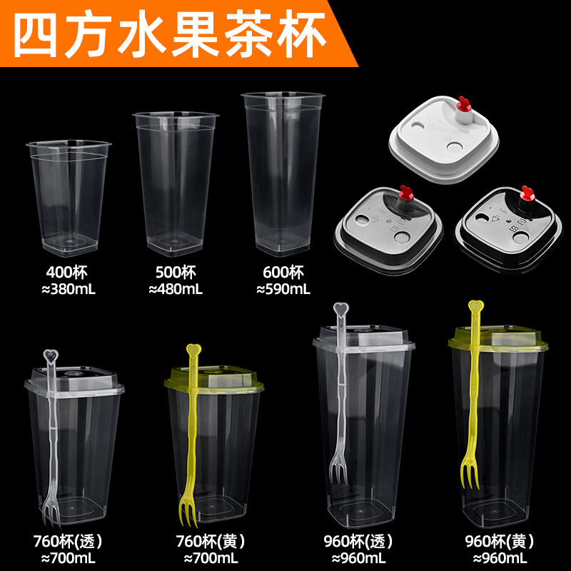 角型ミルクティーカップ一度に厚いpp透明プラスチックジュース飲料カップ600ml四方カップ射出カップ