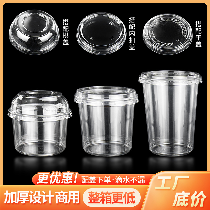 ネットレッドpetサトイモ円氷粉ボウル使い捨てプラスチック透明サラダバレルカップデザート果物すくい包装ケース蓋付き