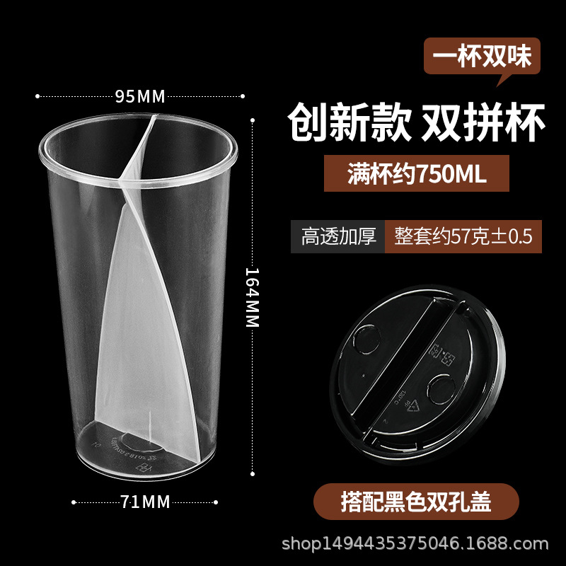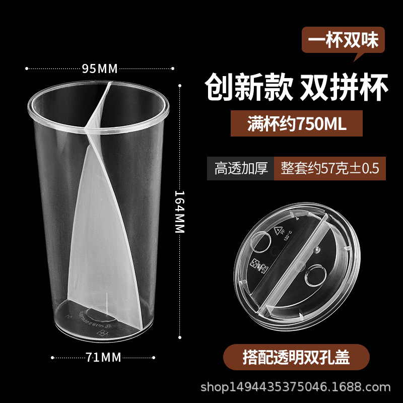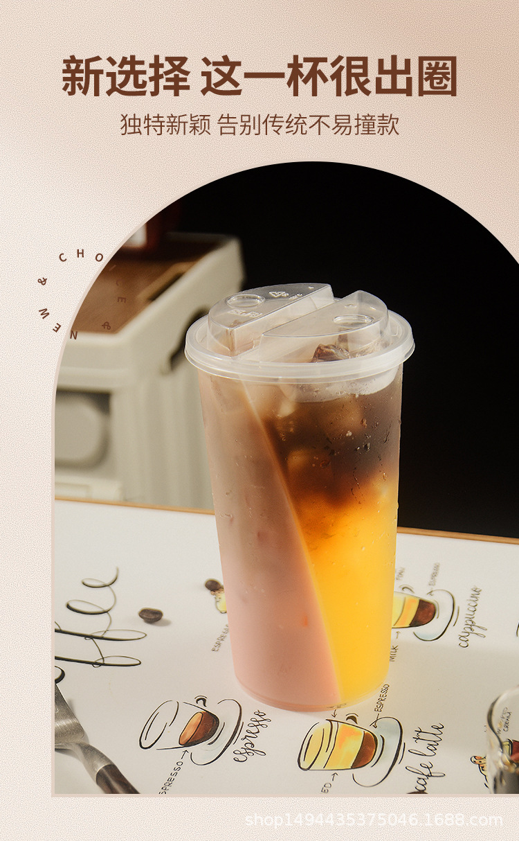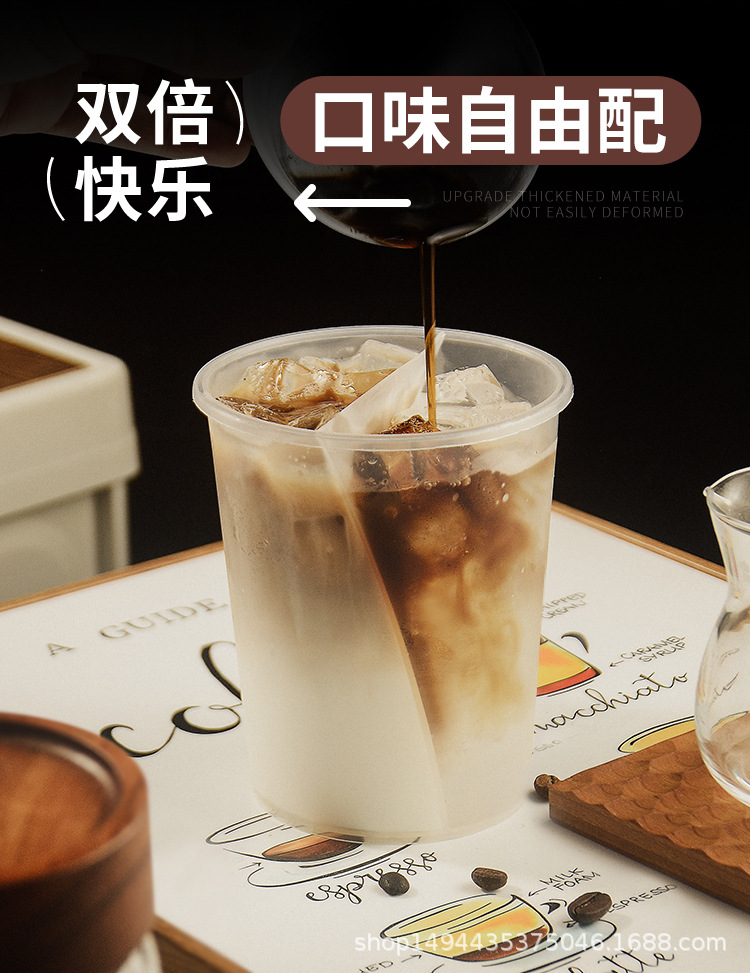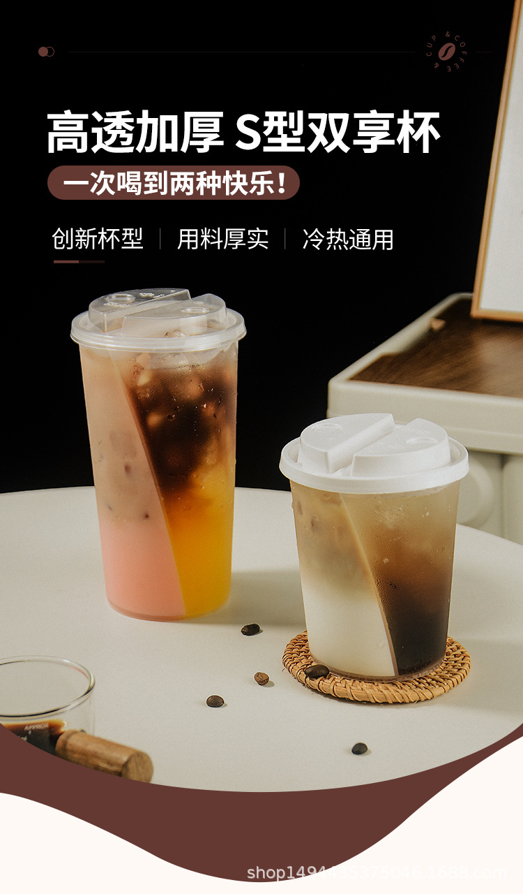 一次性双拼奶茶杯S型PP材质大口径冷饮外带杯防漏盖鸳鸯杯奶茶杯
